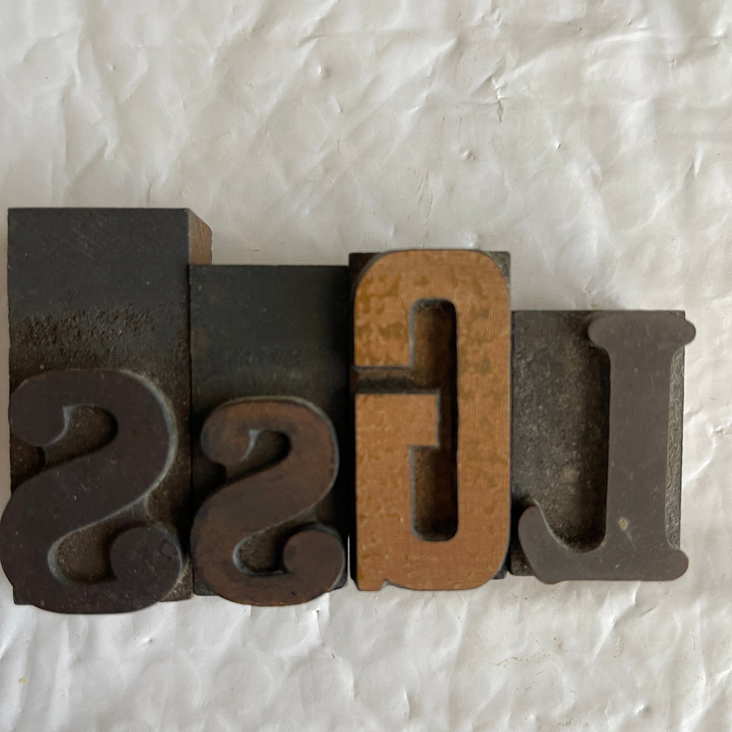 Antique Wooden Letterpress Blocks Set of 4 Collectible Printing Press Parts