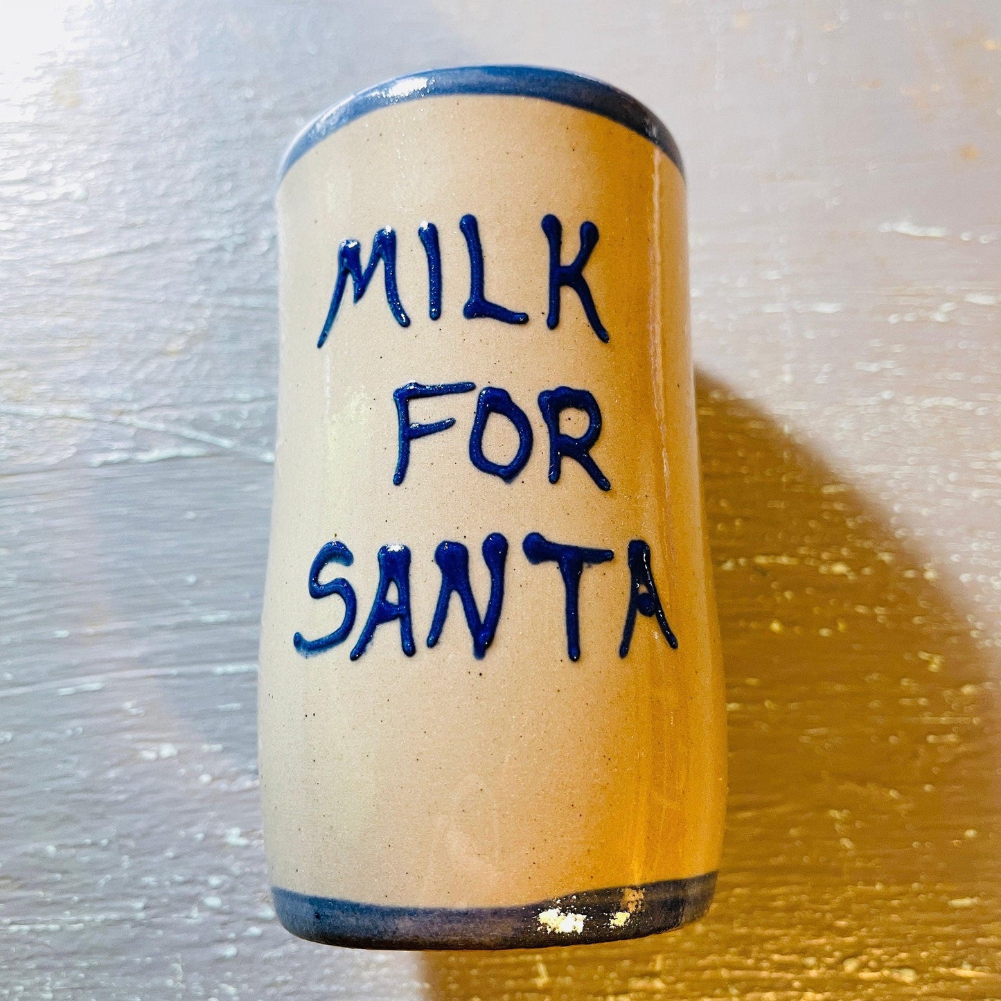 BBP Crockery, Milk For Santa, Blue Trimmed, Vintage 1996, Crock Wear Mug