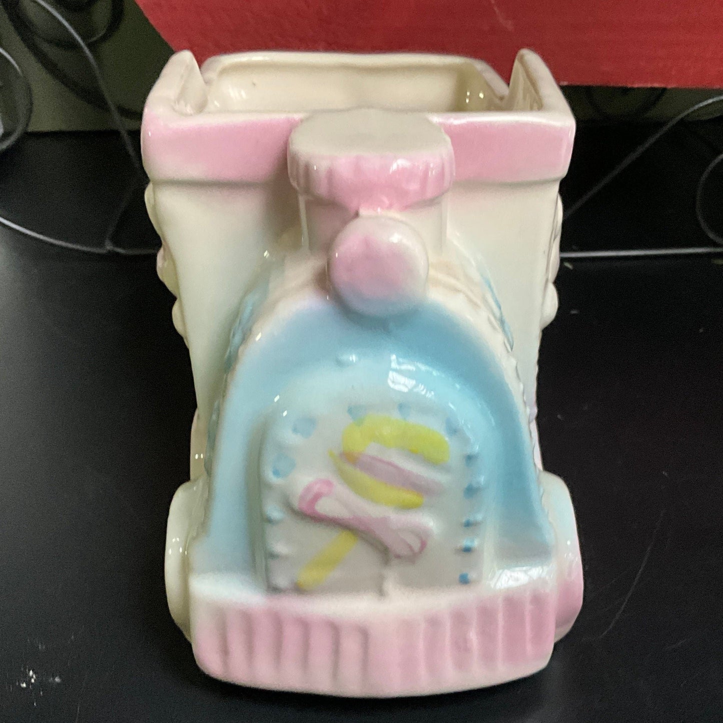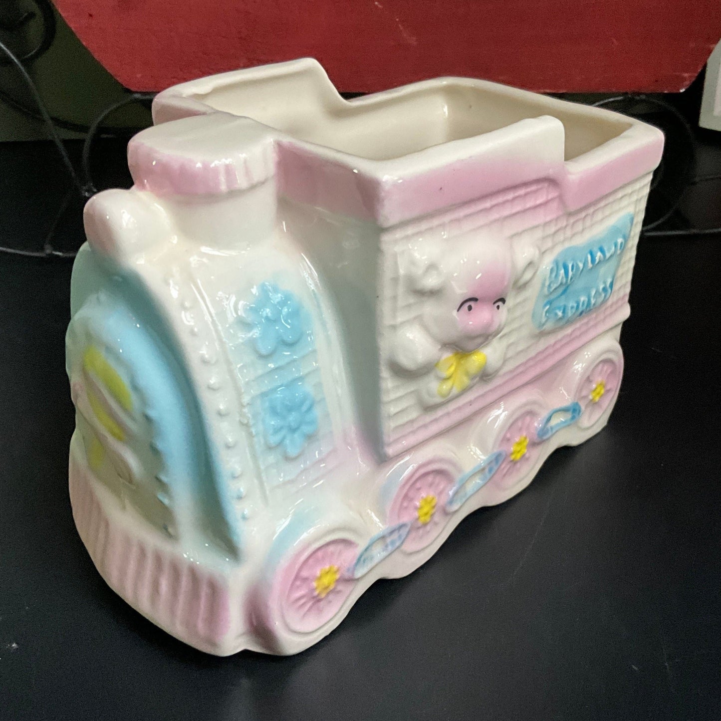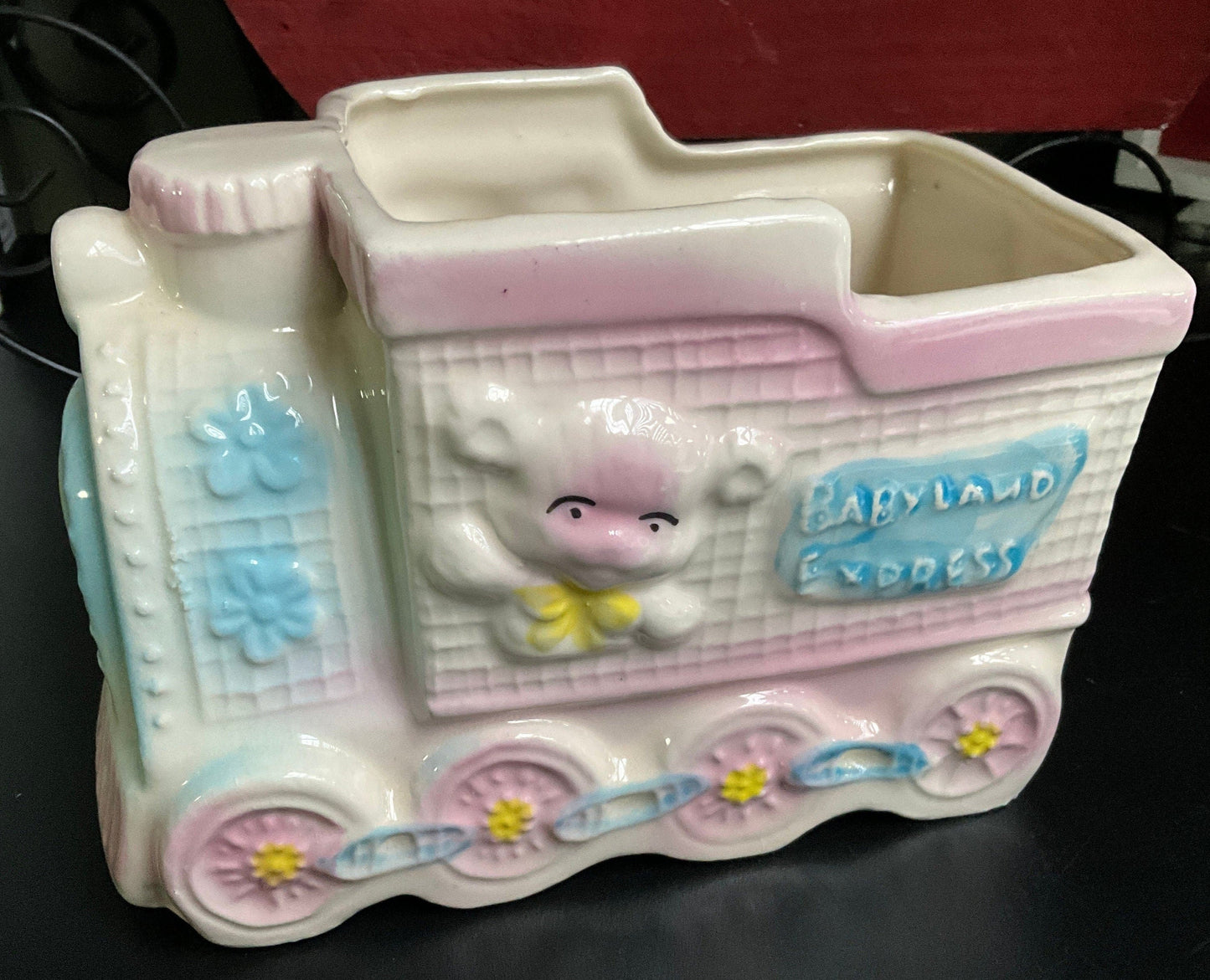 Beautiful Babyland Express teddy bear driving a choo-choo train nursery container/planter figurine