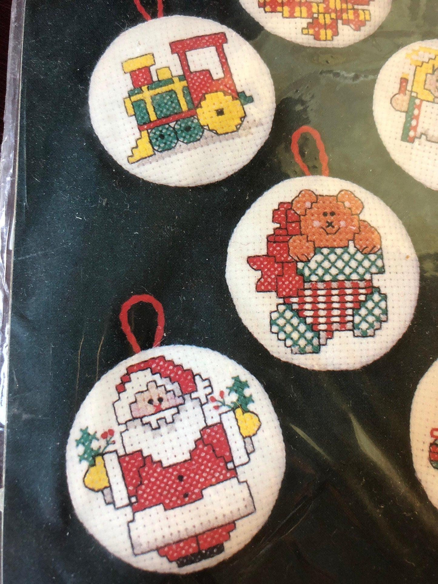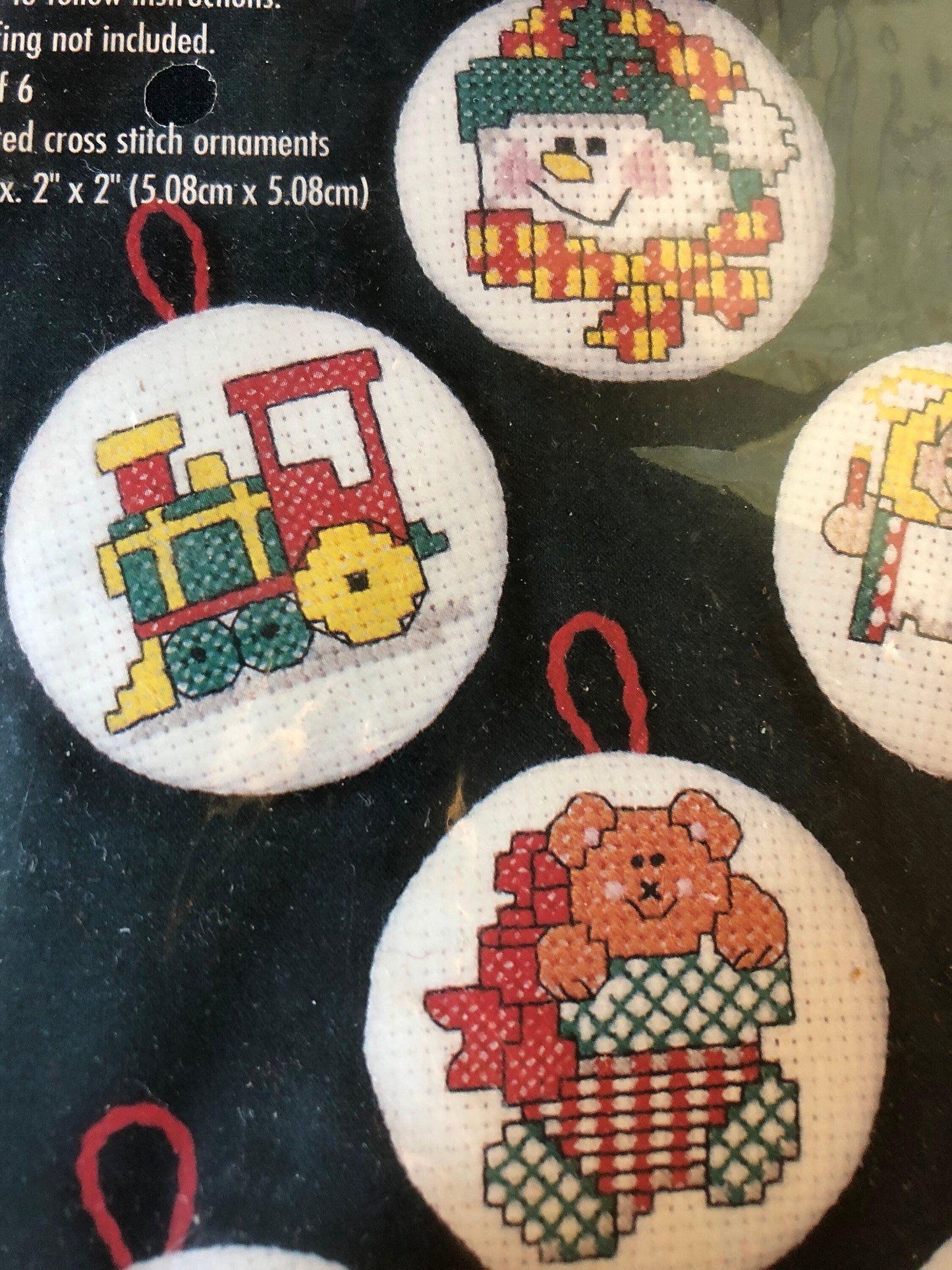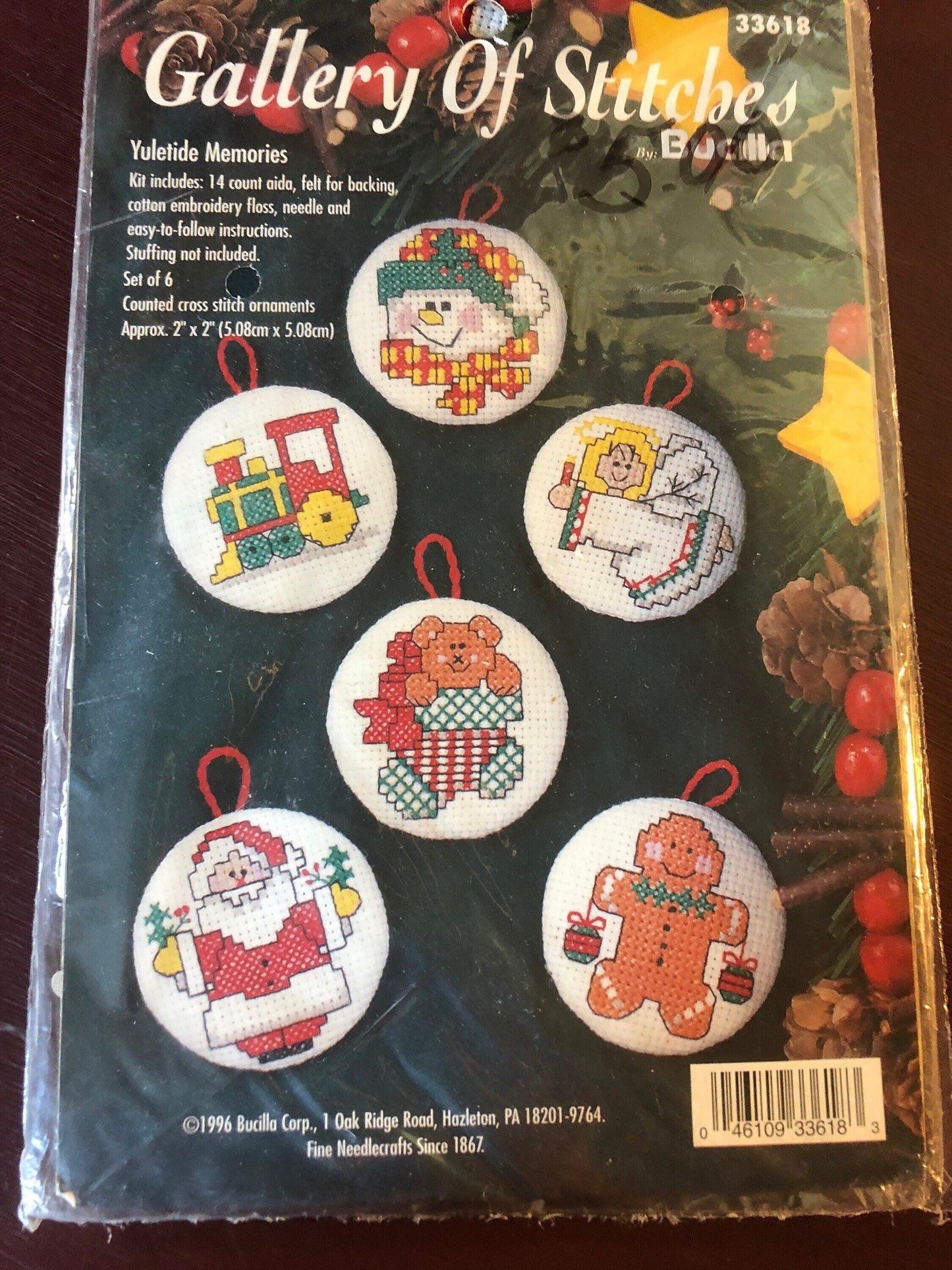 Bucilla, Gallery of Stitches, Yuletide Memories, Vintage 1996, Cross Stitch, Ornaments Kit, 2 by 2 Inches