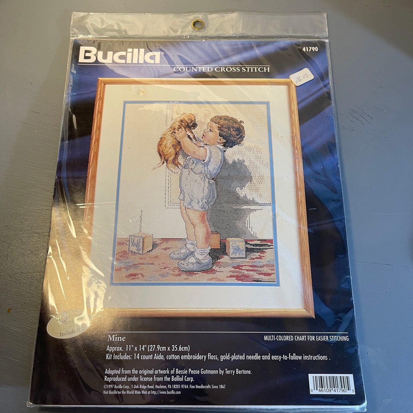 Bucilla Mine 41790, Vintage 1997, Counted Cross Stitch Kit, Stitched On 14 Count White AIDA, 11 by 14 inches