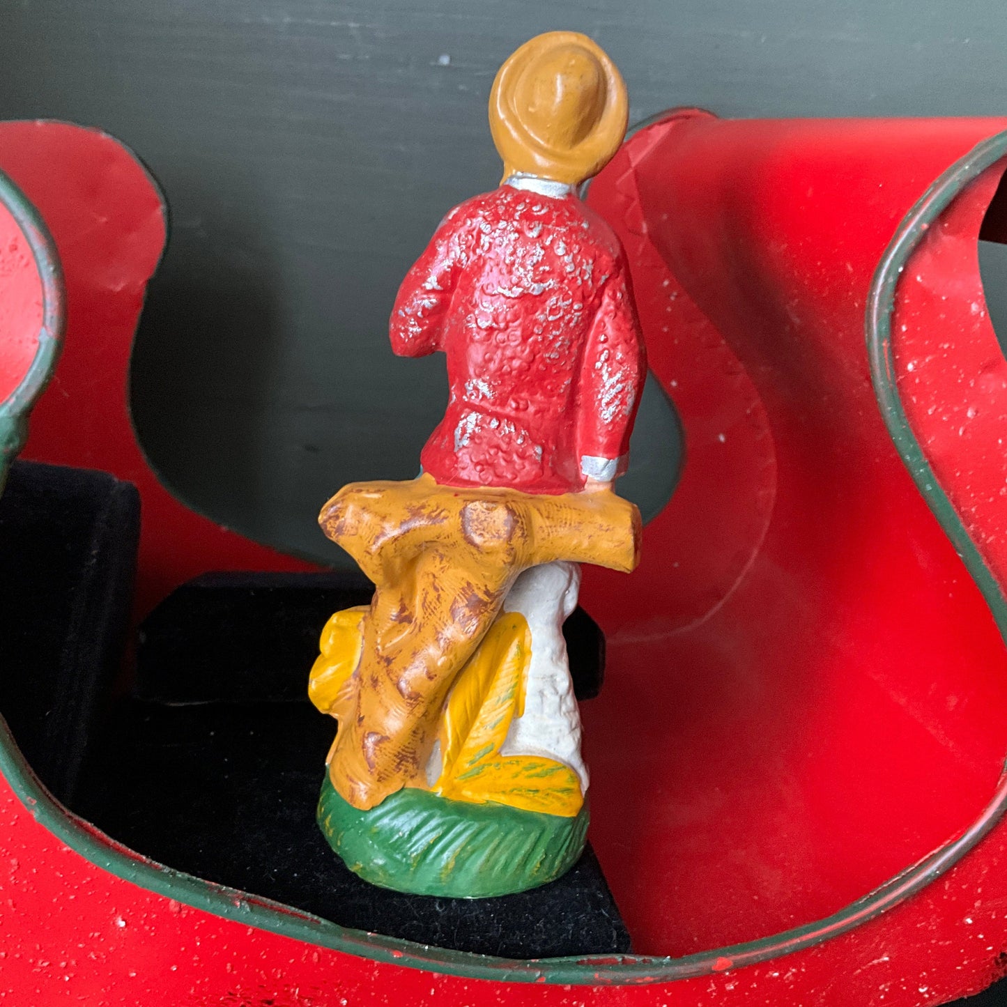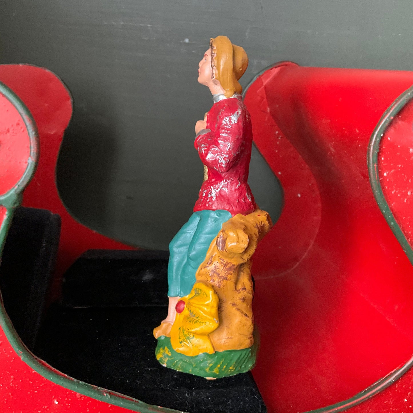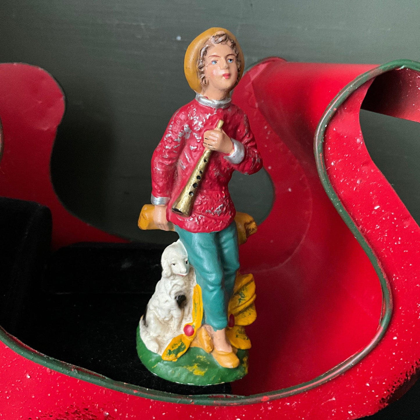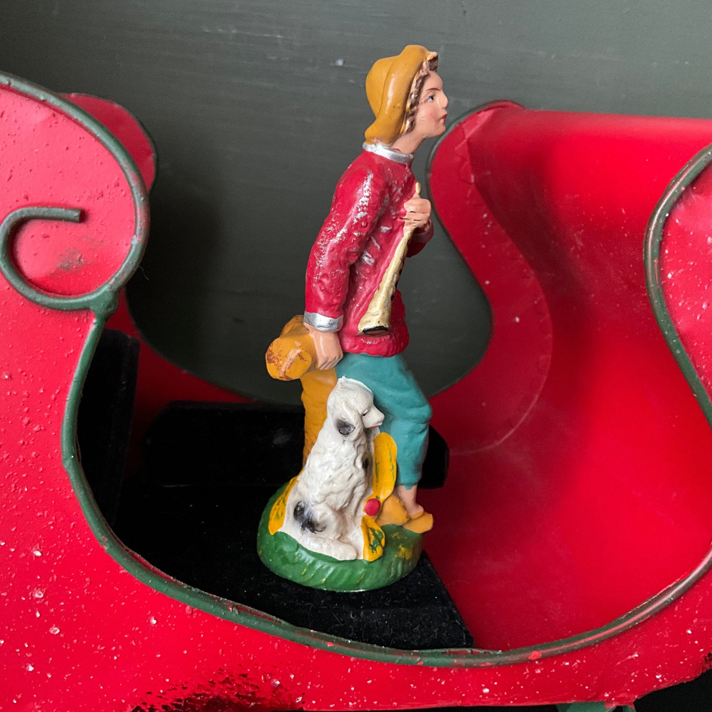 Charming country boy with his horn and his dog out for a stroll vintage collectible figurine