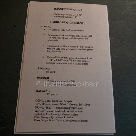 Civil War Legacies, Bonnet Ties #253, Finished Quilt Size 27 by 32 Inches