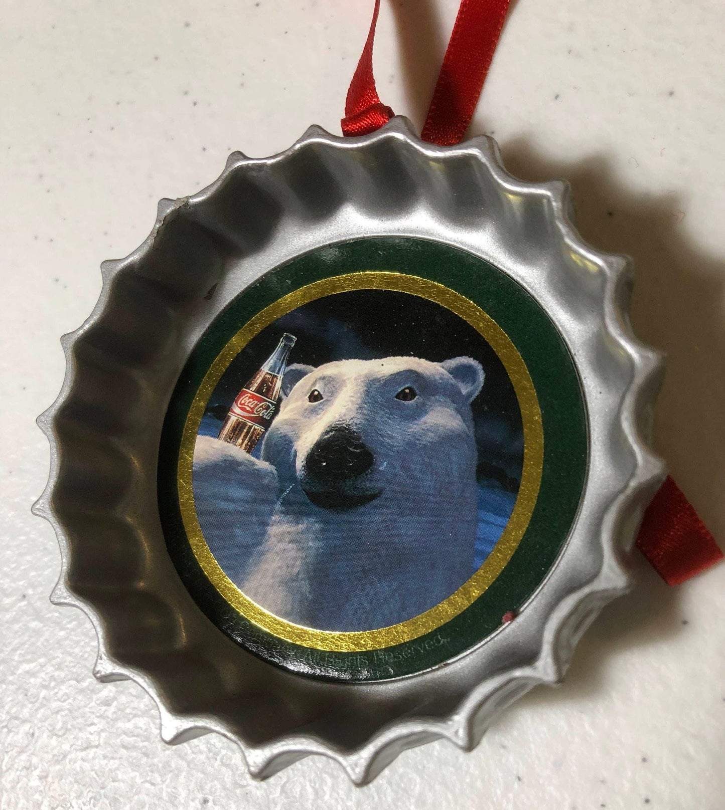 Vintage, 1994, Coca Cola, Polar Bear, Coke Bottle Cap, Christmas, Ornament