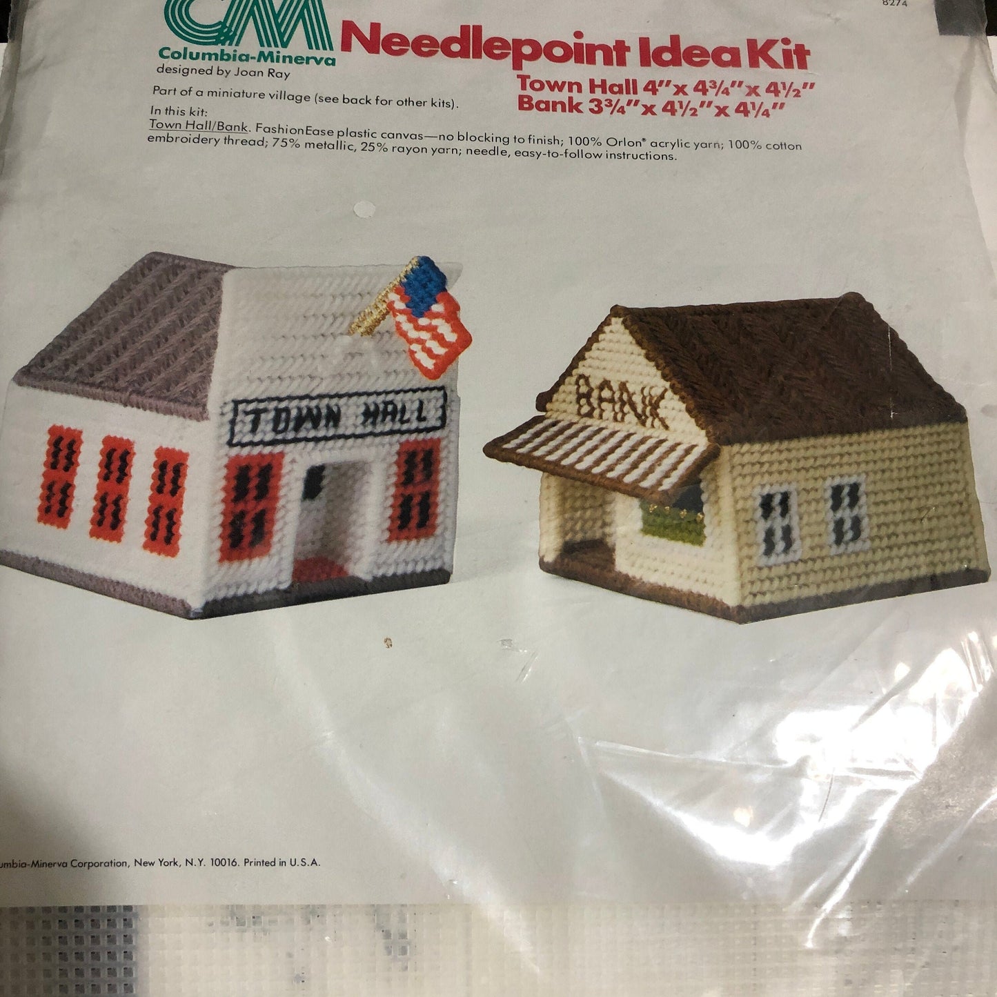 Columbia Minerva, Town Hall and Bank, Vintage 1978, Plastic Canvas Kit*