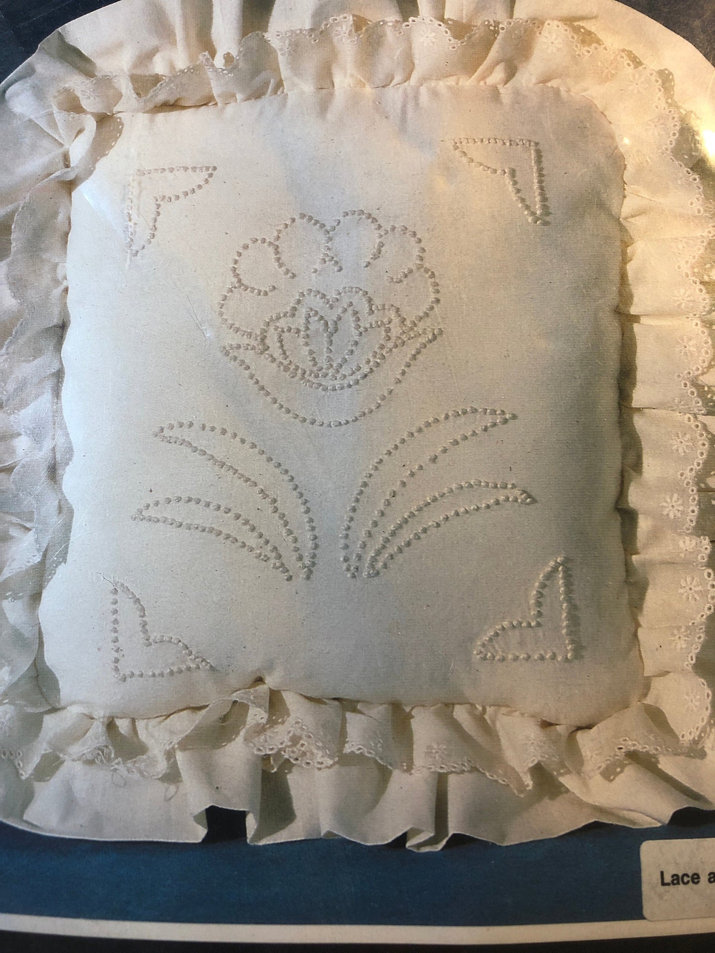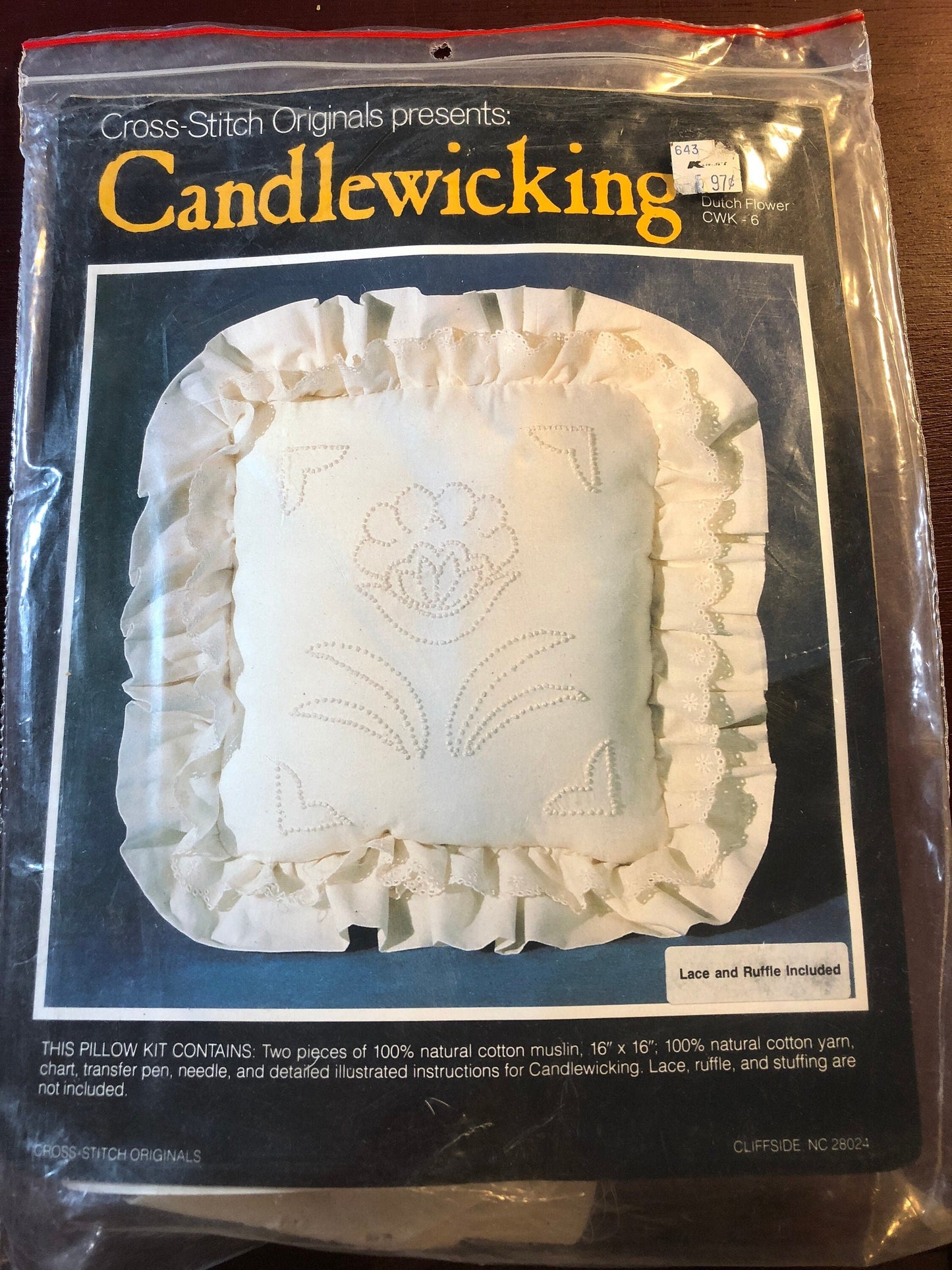 Cross Stitch Originals, Dutch Flower, Vintage Candlewicking, Pillow Kit, Includes Lace and Ruffle, 16 by 16 Inches