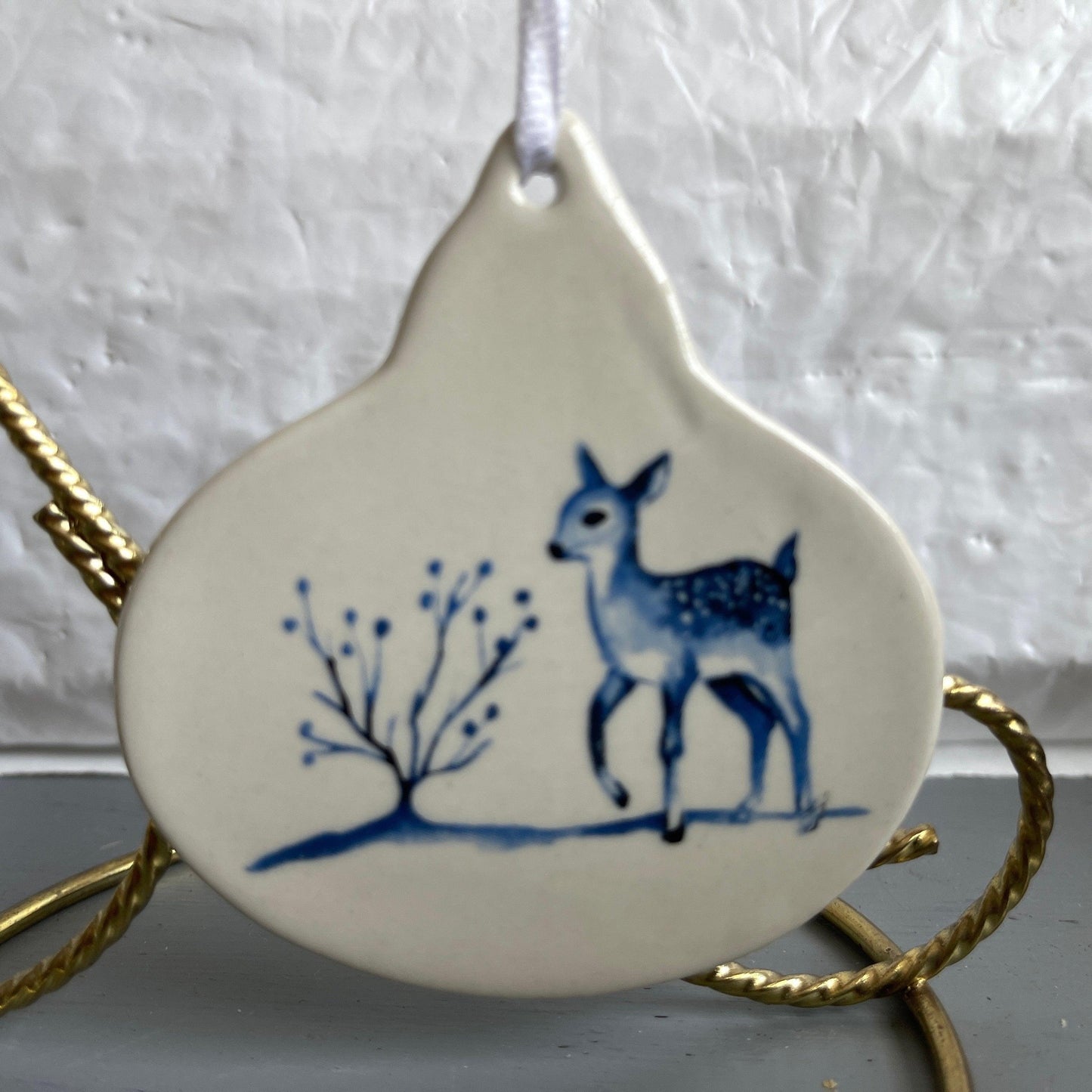 Cute Little Doe Trotting Along Vintage Stoneware Christmas Tree Ornament