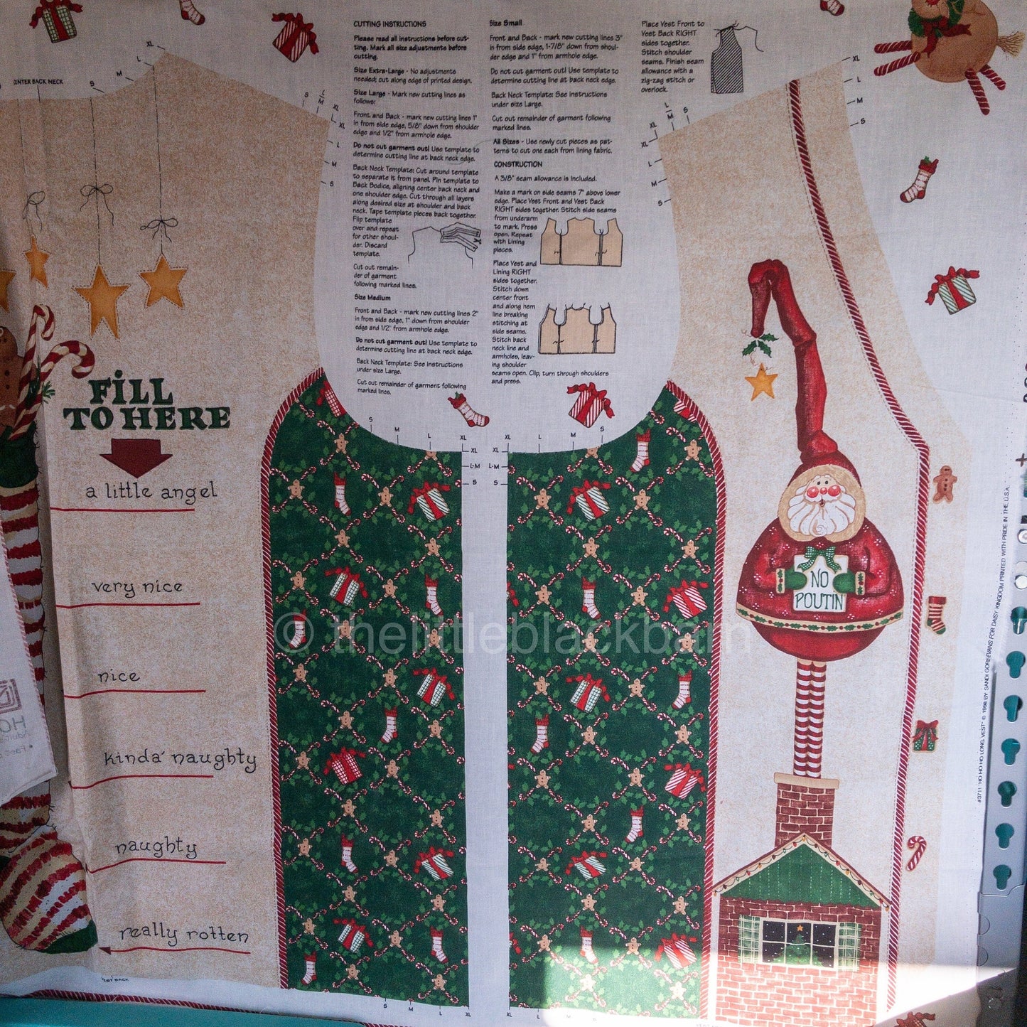 Daisy Kingdom, Ho Ho Ho Vest Fabric Panel Adult Sizes 8-22