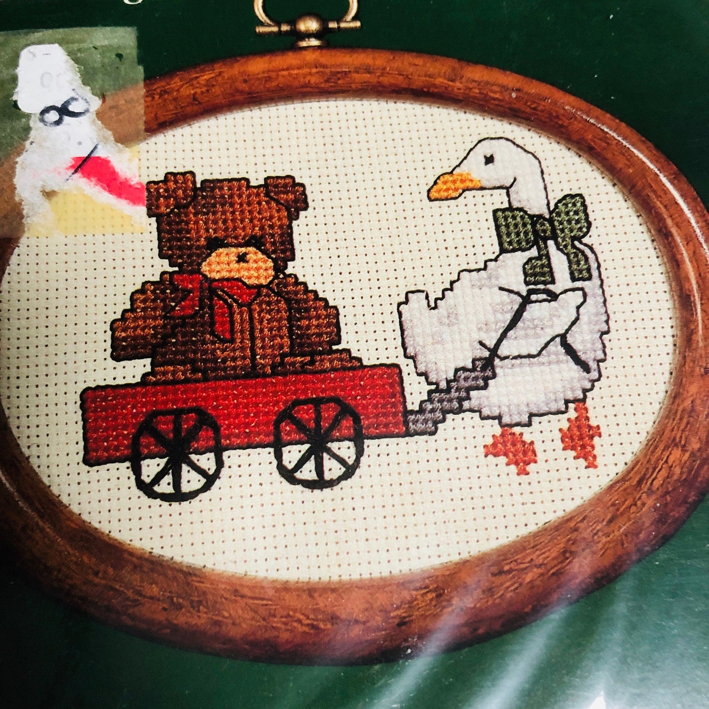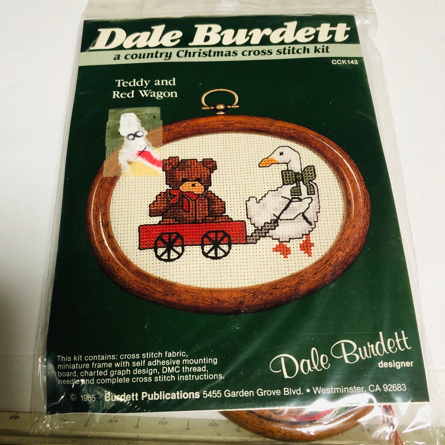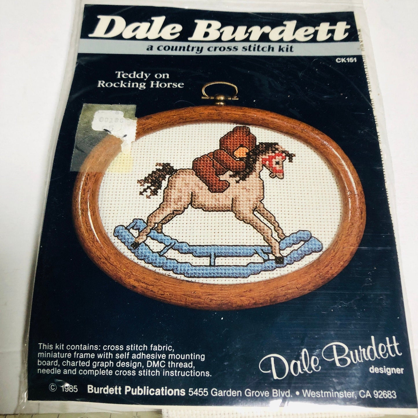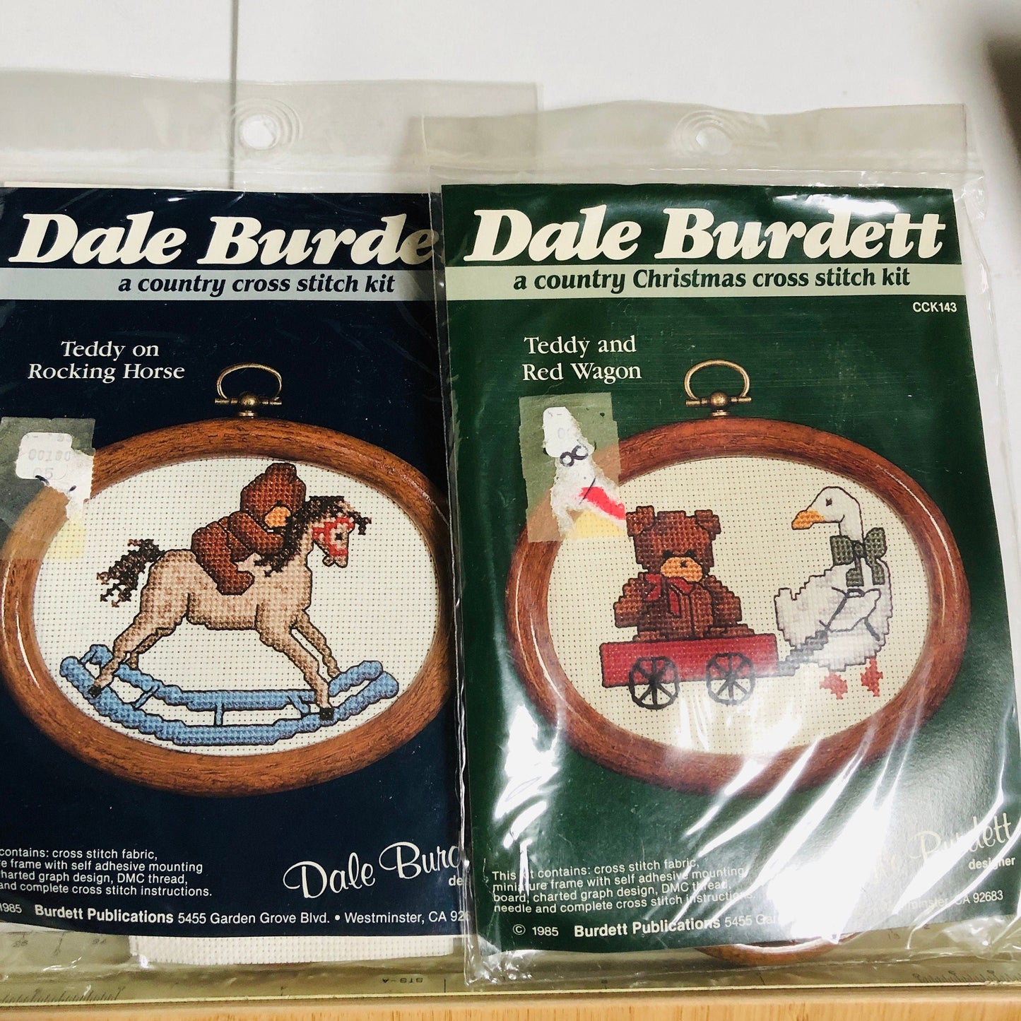Dale Burdett, Set Of 2, Teddy On Rocking Horse and Red Wagon, Vintage 1985, Counted Cross Stitch Kits*