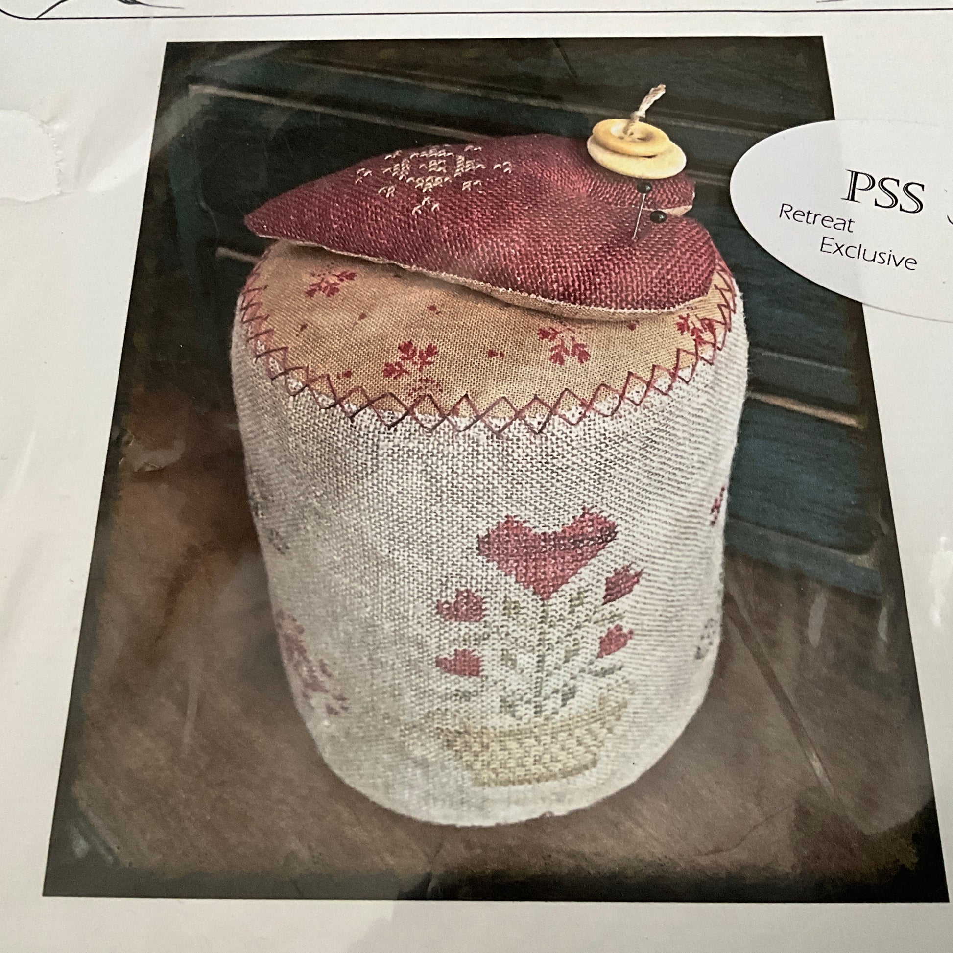 Delaney Woods Treasures Be Mine Pinkeep Drum Original Deigns by Theresa L. Meloon cross stitch chart Retreat Exclusive!