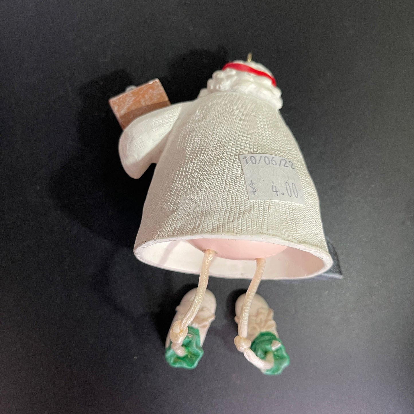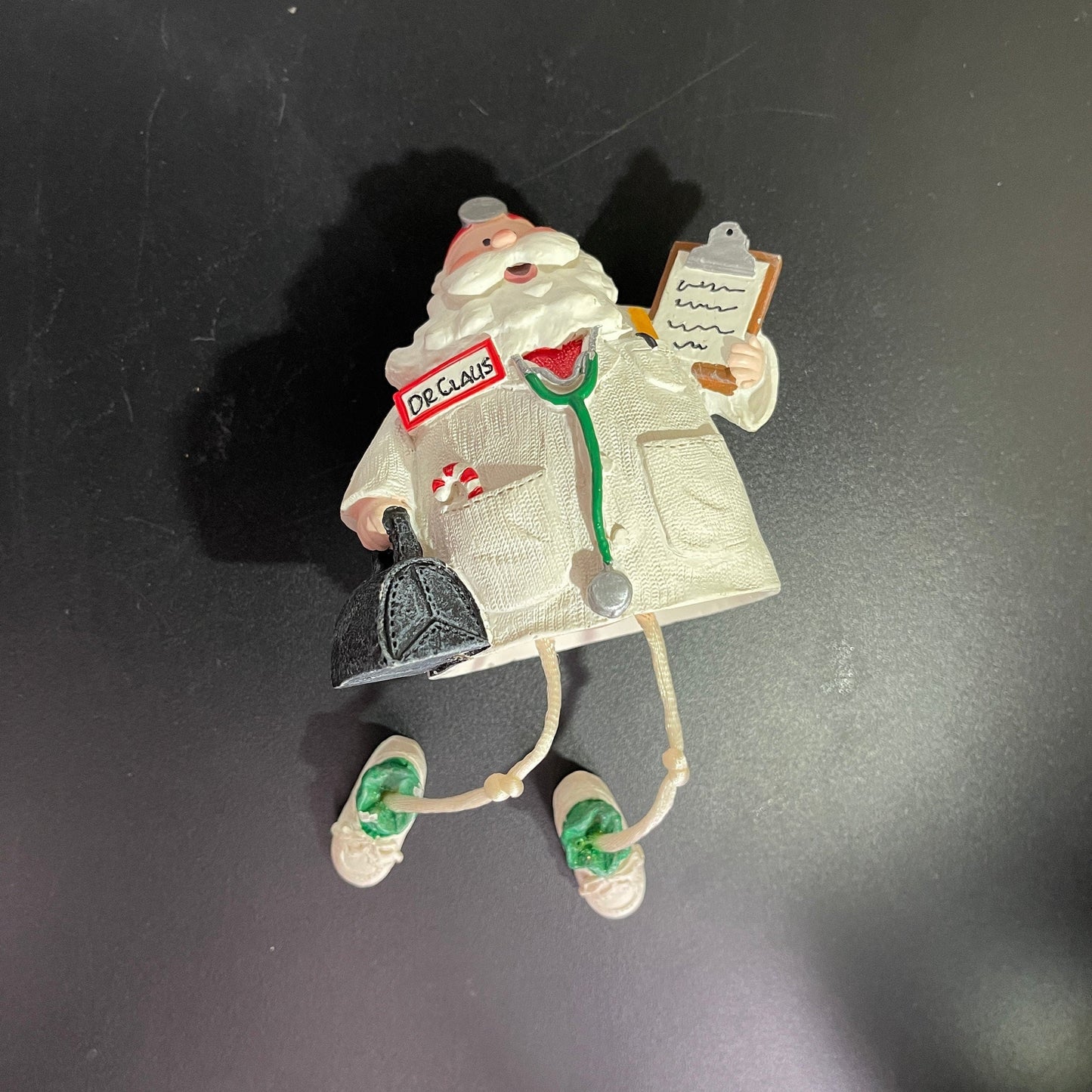 Delightful Dr. Claus Santa shelf sitter with dangling lags painted ceramic Christmas ornament decoration
