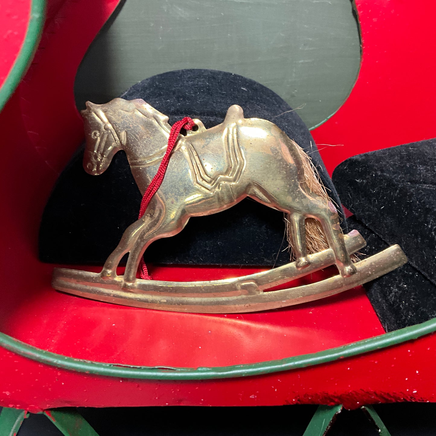 Department 56 Rocking Horse in gold-tone metal tin ornament