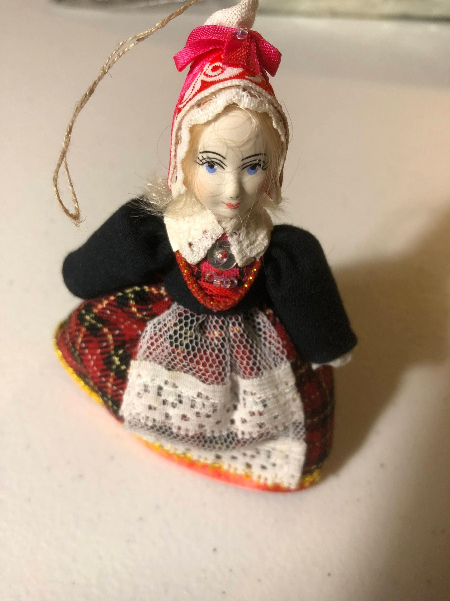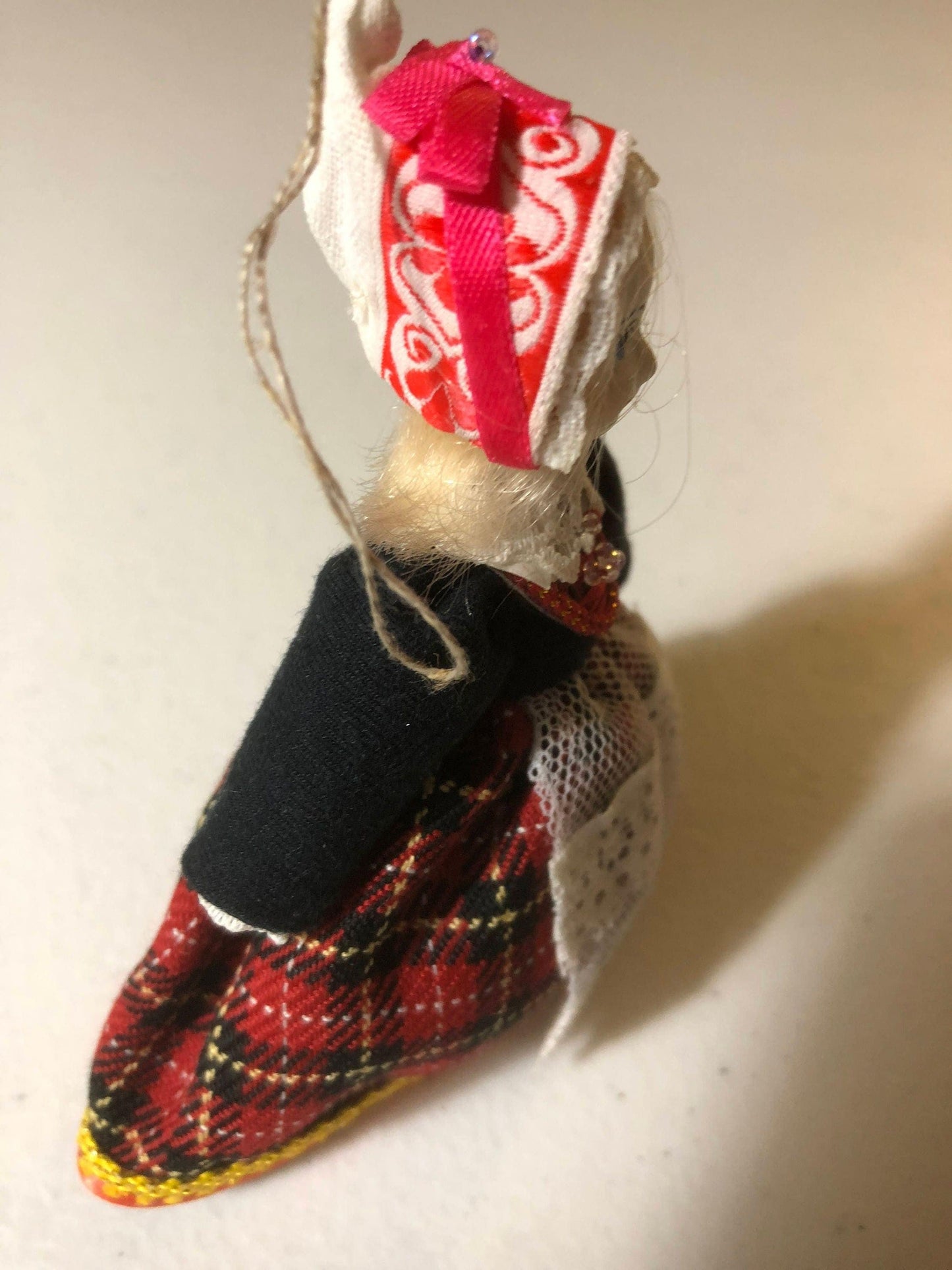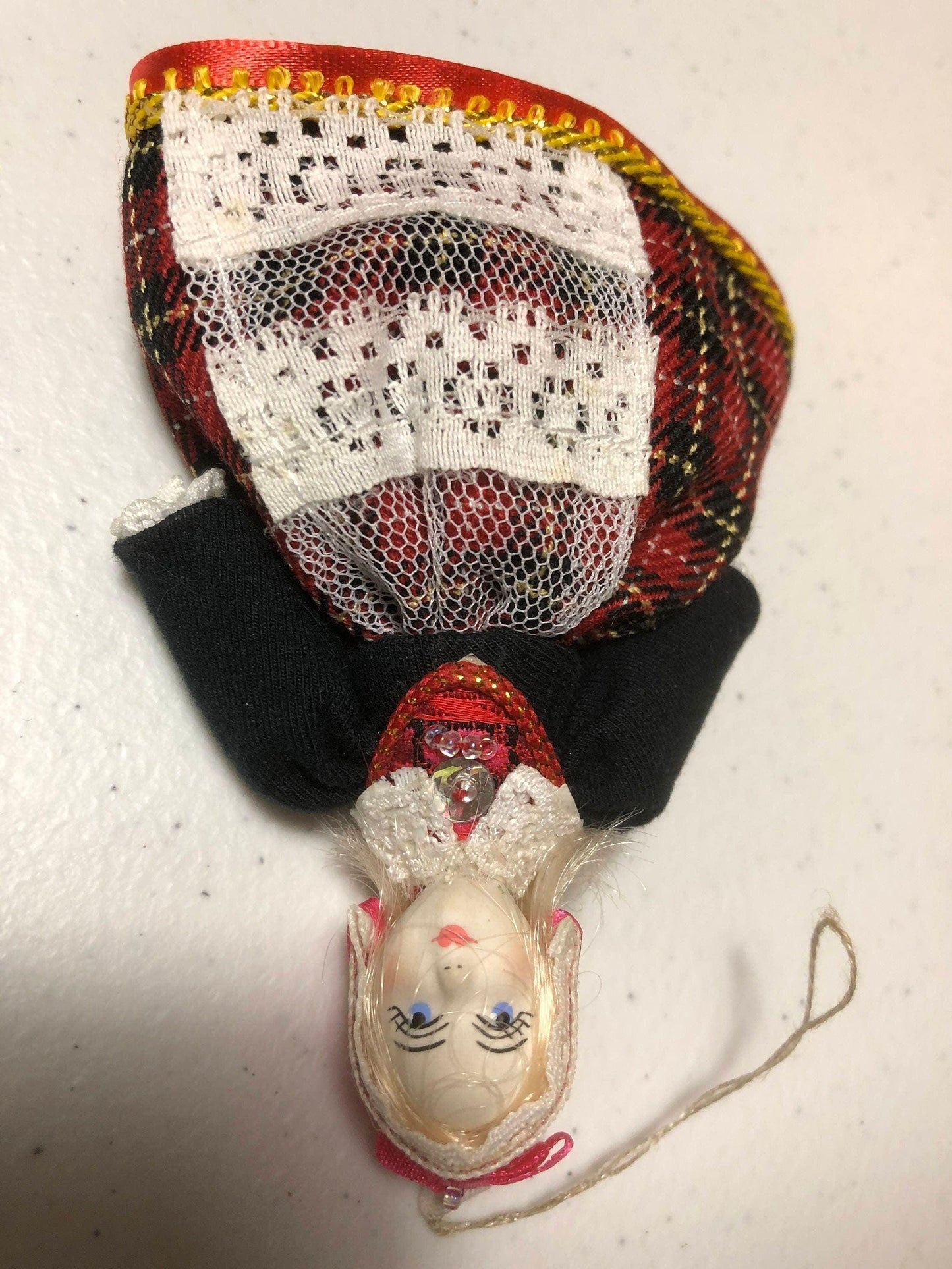Doll with Dutch Christmas Bonnet, Beautiful Vintage Ornament