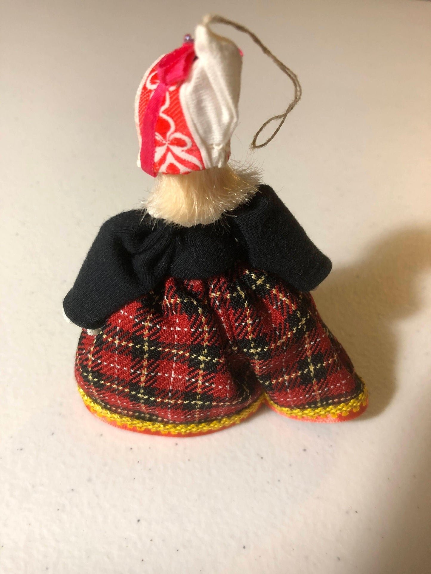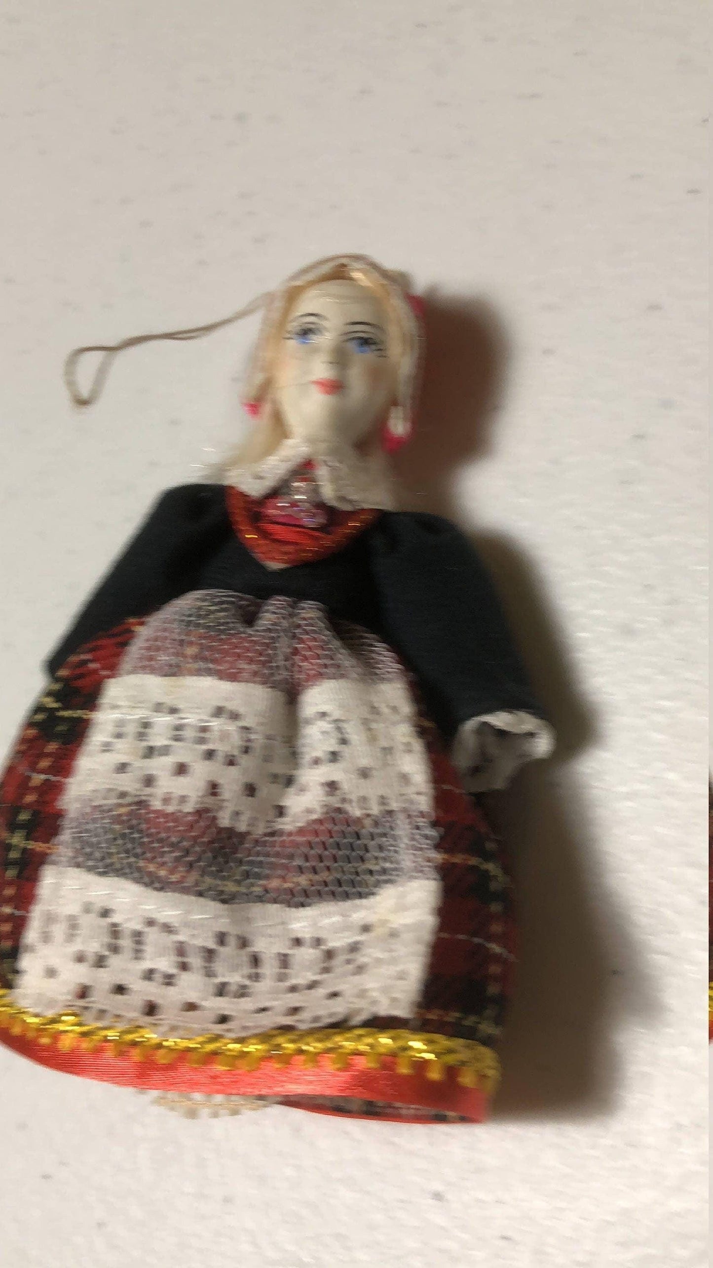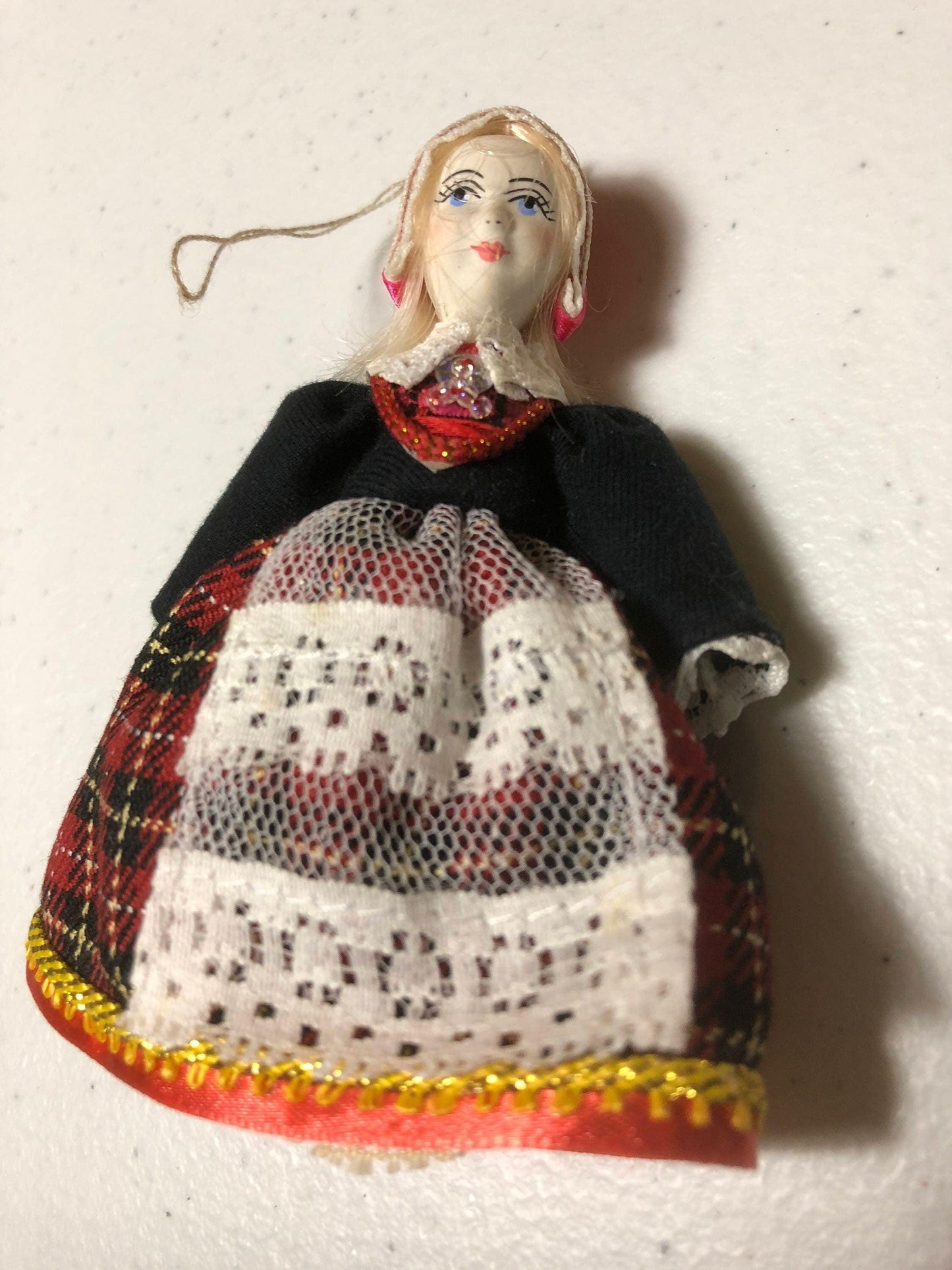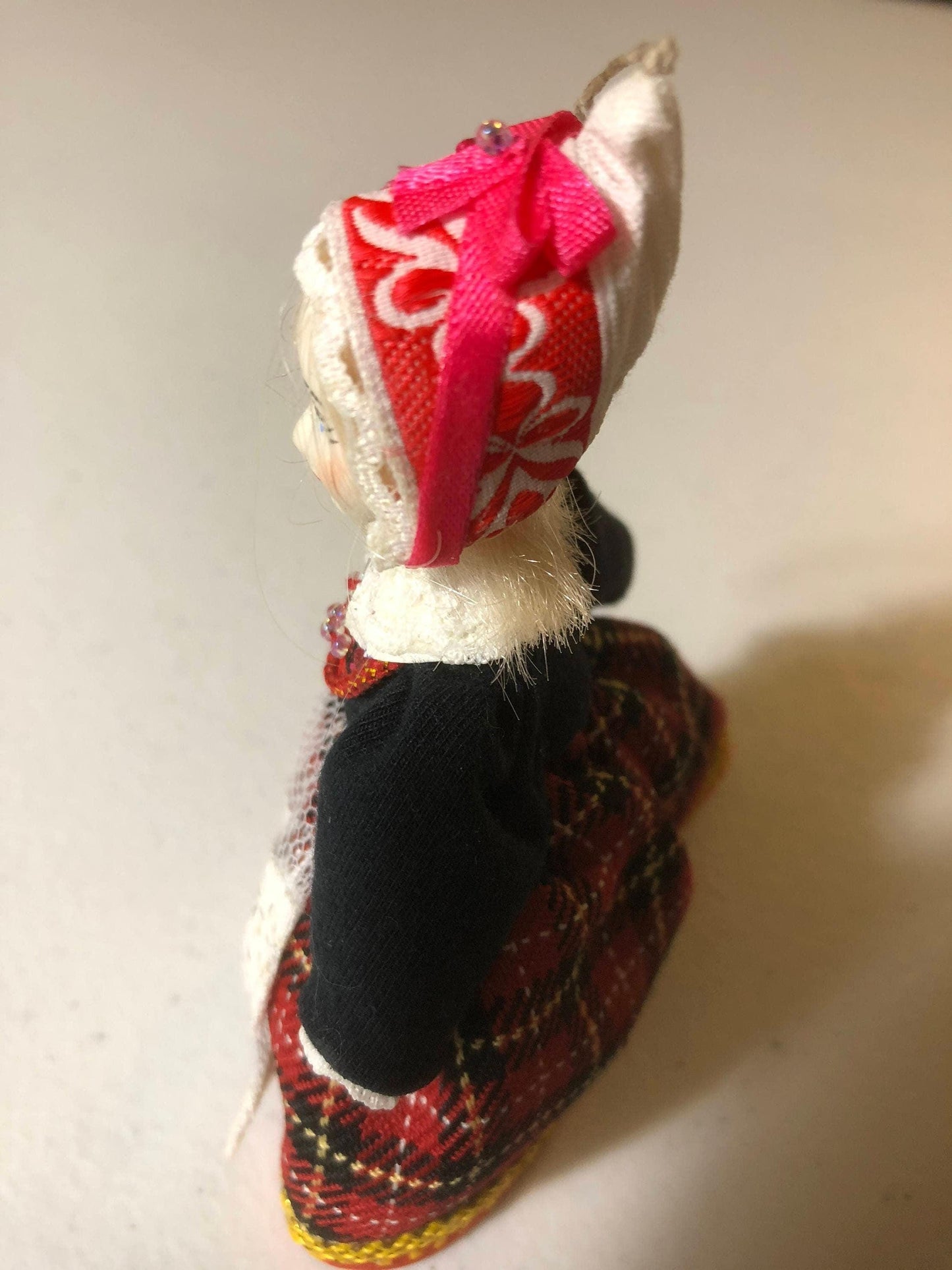 Doll with Dutch Christmas Bonnet, Beautiful Vintage Ornament