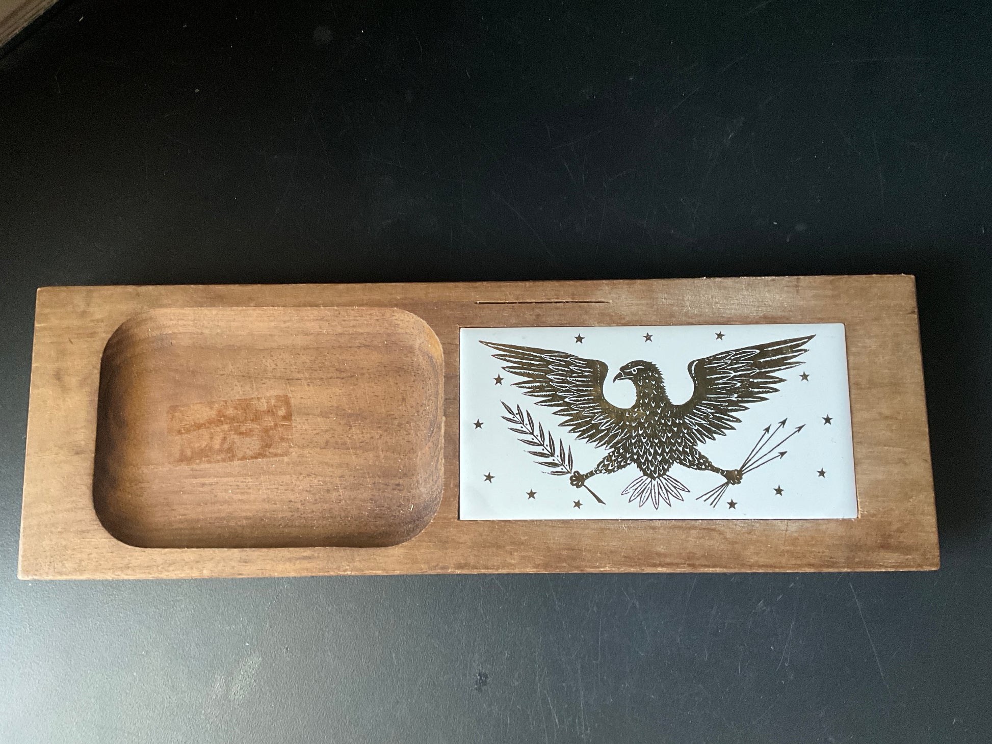 Eagle tile wooden cheese tray/valet by Rea Cor Woodcraft great keepsake trinket change catcher