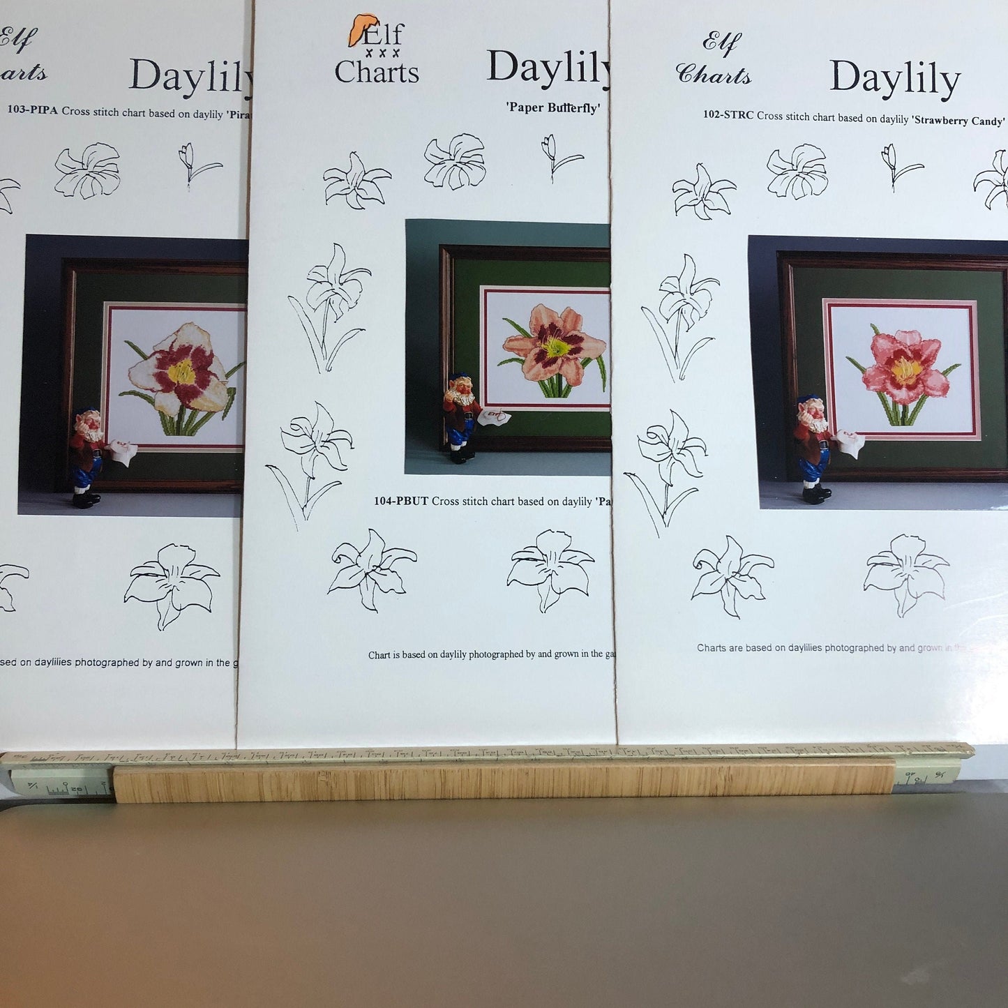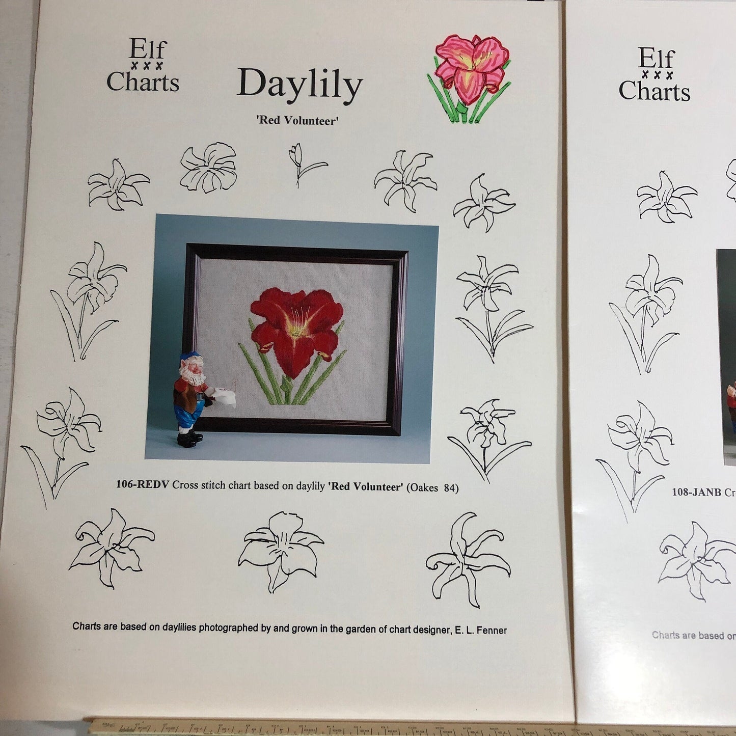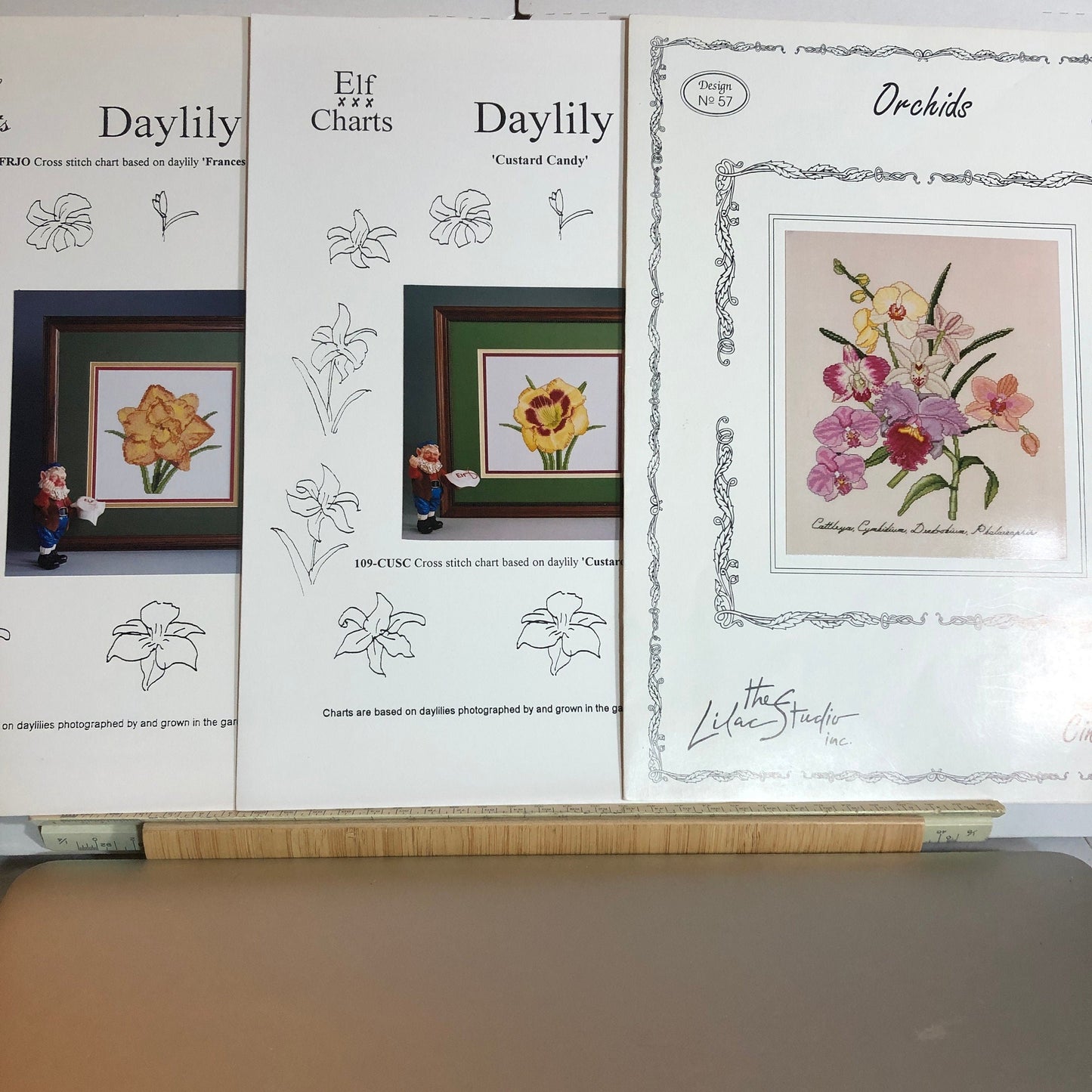 Elf Charts & Lilac Studios, Amazing Set Of 14, Daylily, Floral Charts, Vintage 1997-2000*
