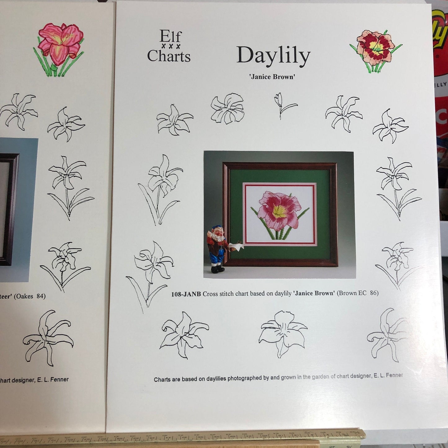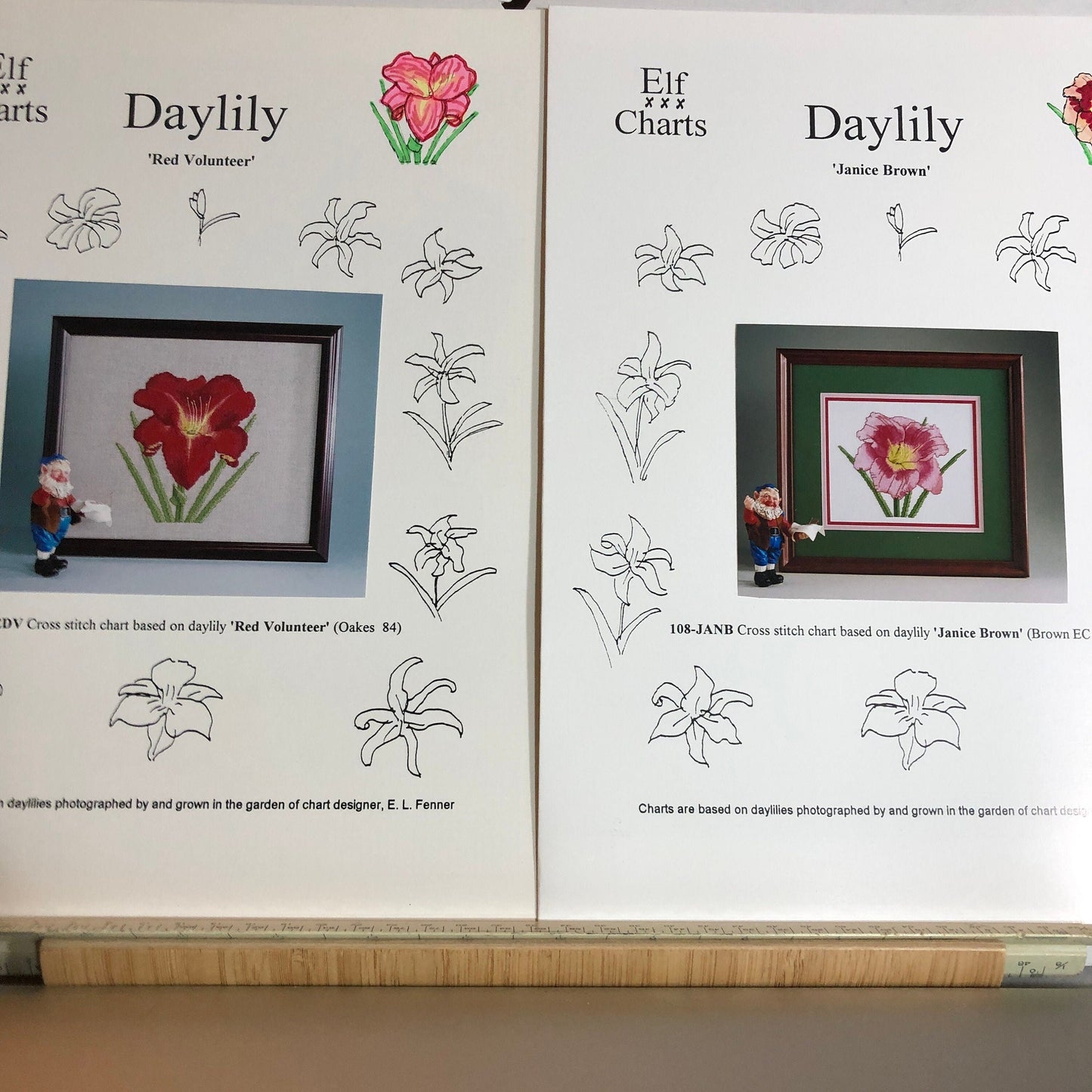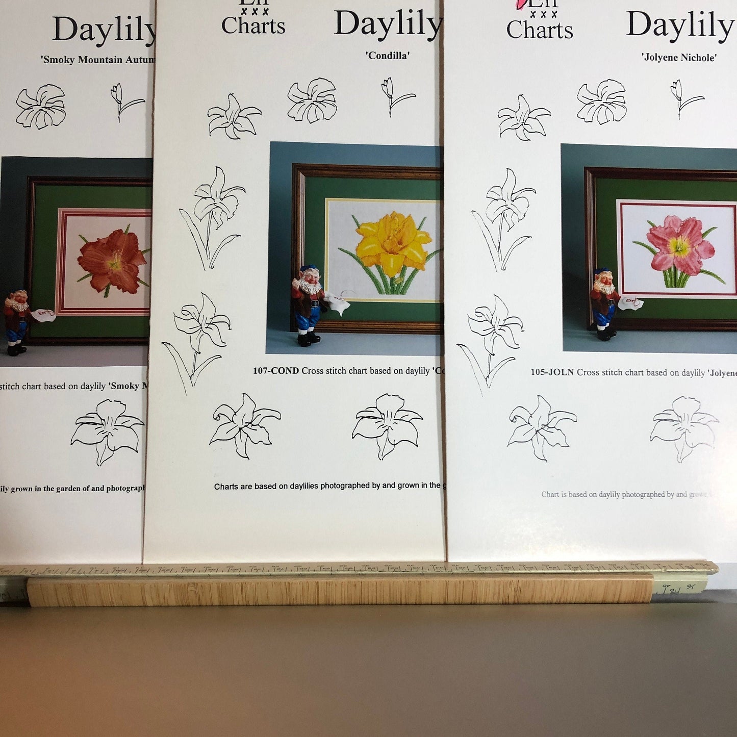 Elf Charts & Lilac Studios, Amazing Set Of 14, Daylily, Floral Charts, Vintage 1997-2000*