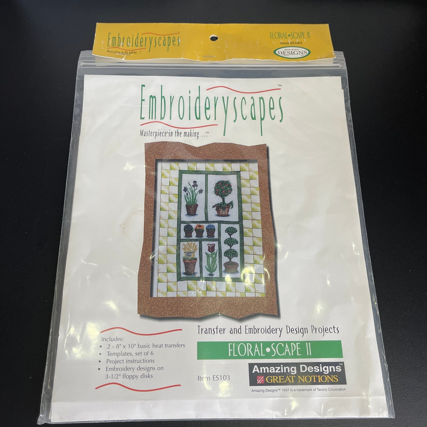 Embroideryscapes Floral Scape Transfers Embroidery Projects Vintage 1997 Embroidery designs on 3.5 inch floppy disc