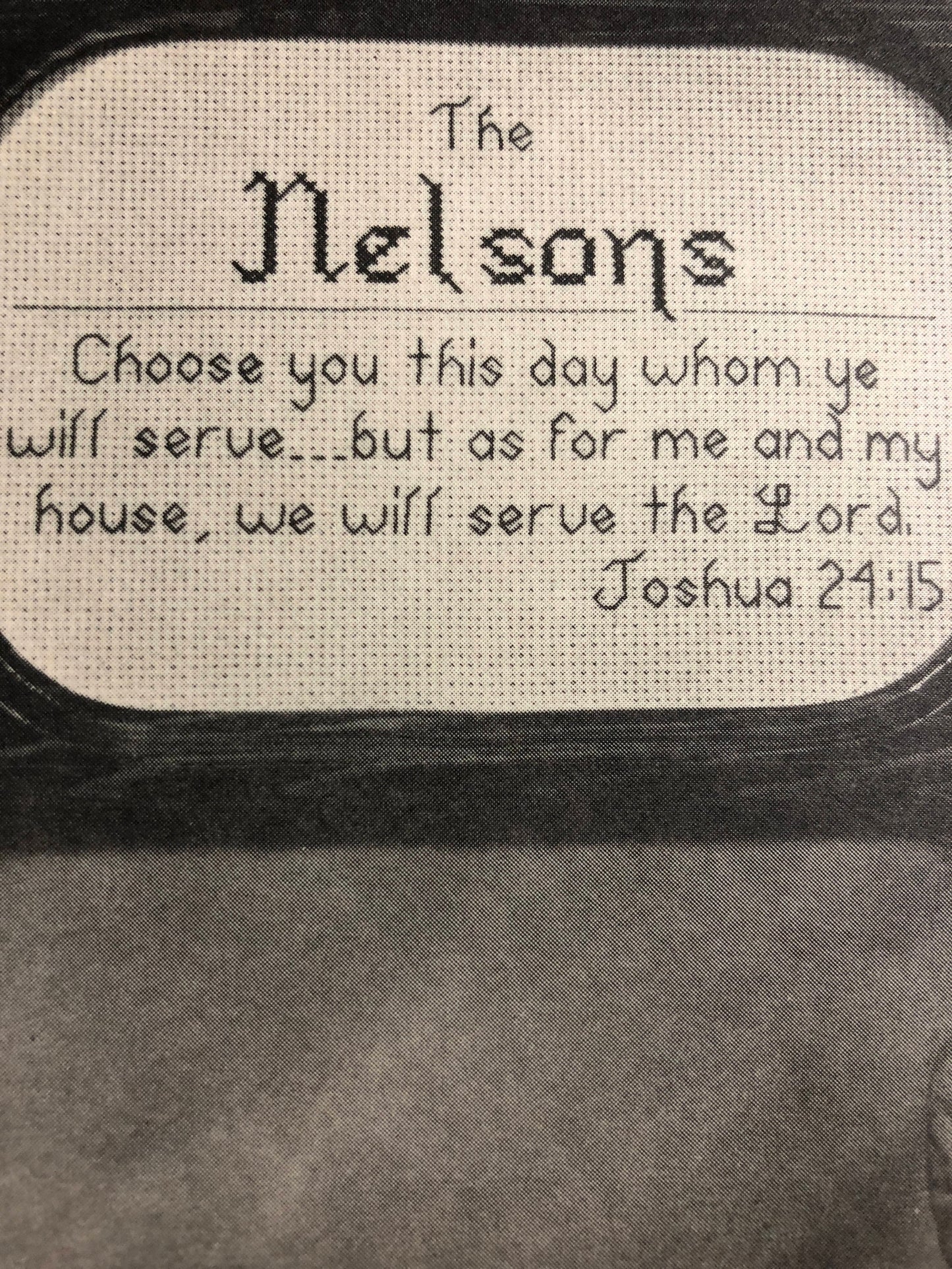 Vintage , 1982, Family Name Sampler, Counted Blessings, Design by, Bobbie Jones and Barb Mock, counted cross stitch pattern