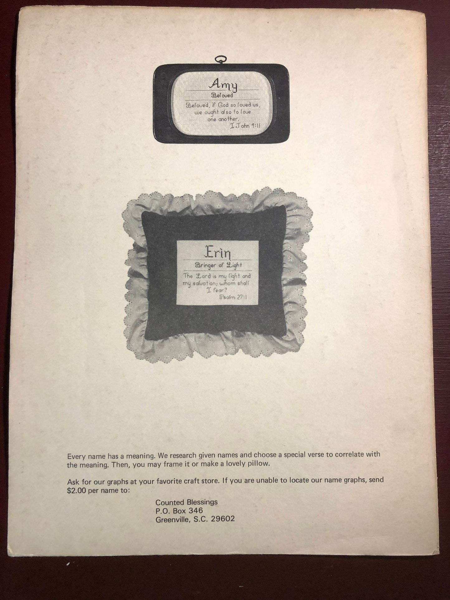 Family Name Sampler, Counted Blessings, Design by, Bobbie Jones and Barb Mock, Vintage ,1982, counted cross stitch pattern