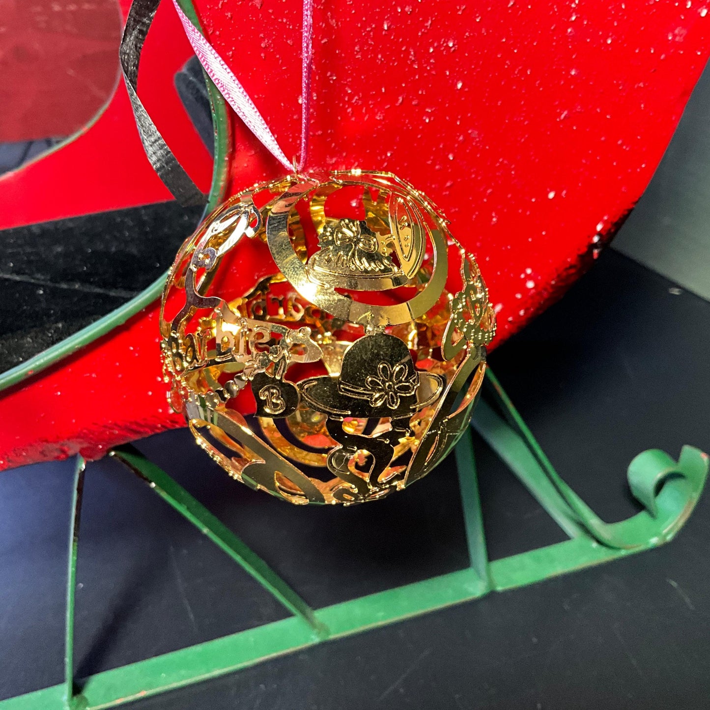 FAO Schwarz Barbie Shere 744946 24k gold finish 2.25 inch ball ornament 12088