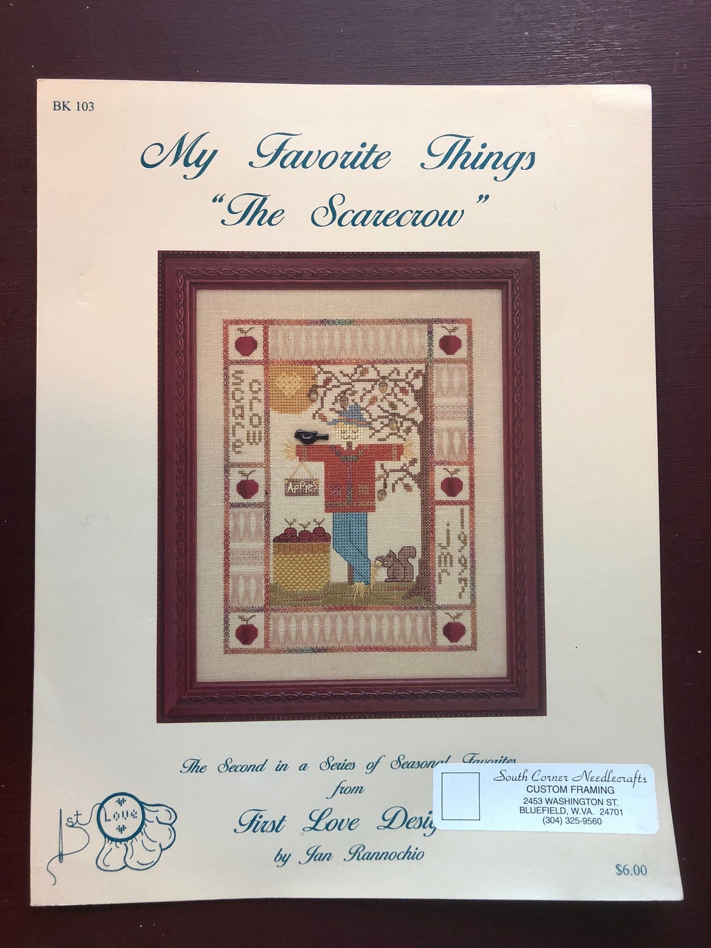 First Love Designs, My favorite Things, The Scarecrow, Jan Rannochio, Vintage 1997, Counted Cross Stitch Pattern, Stitch Count 88 by 116