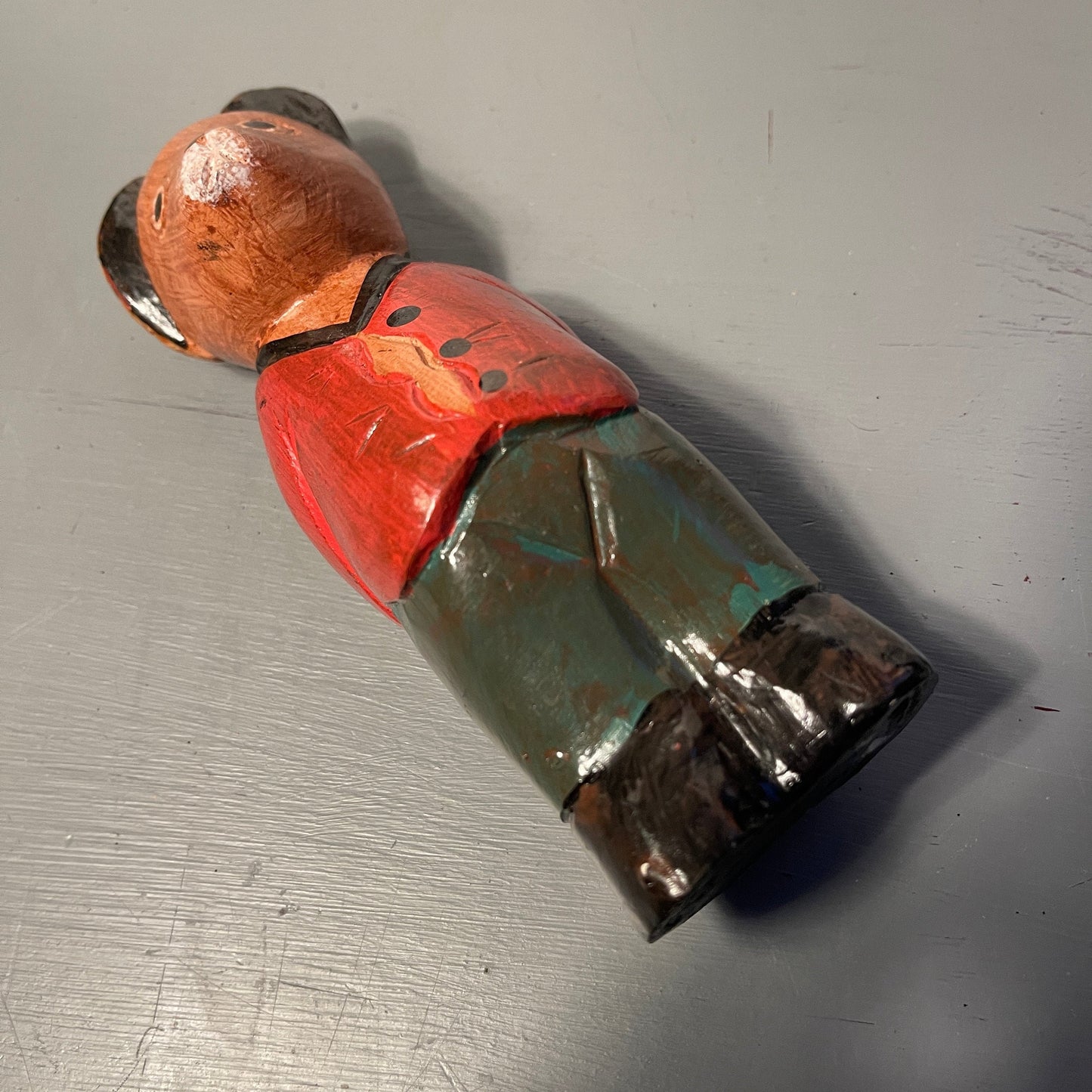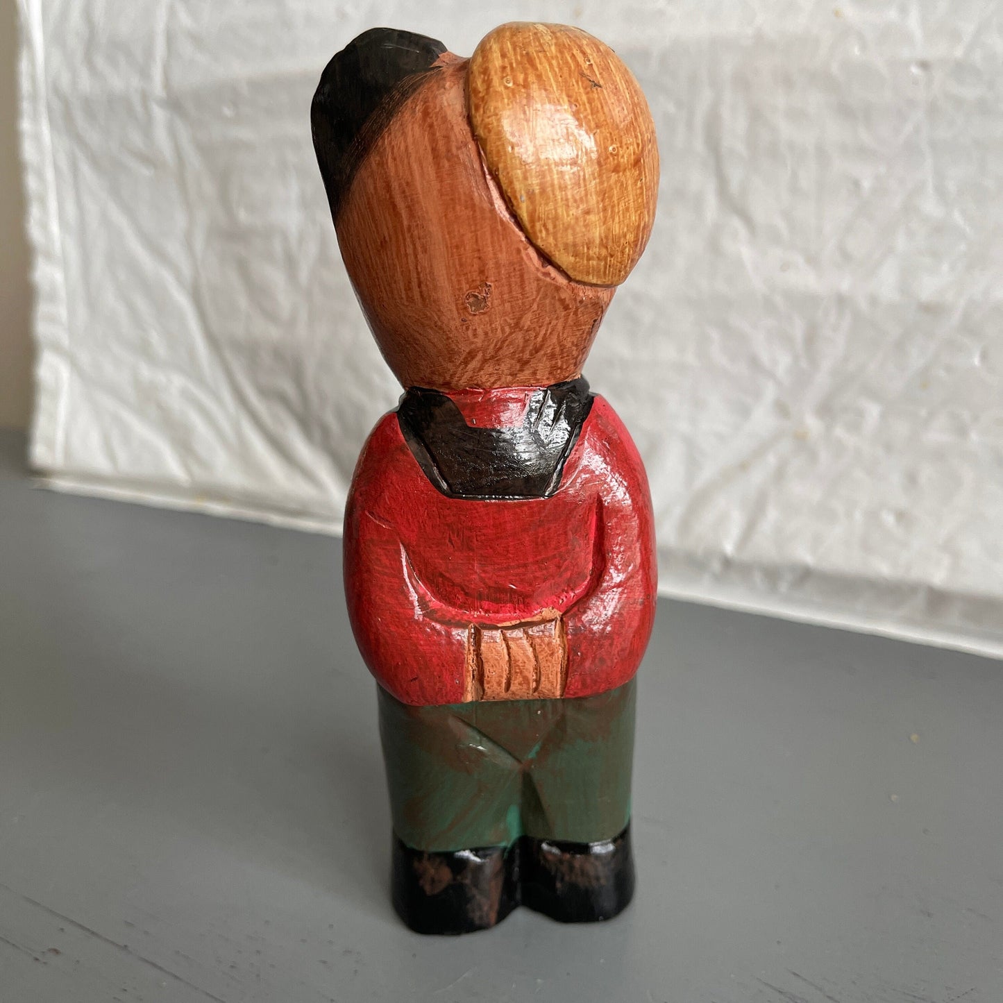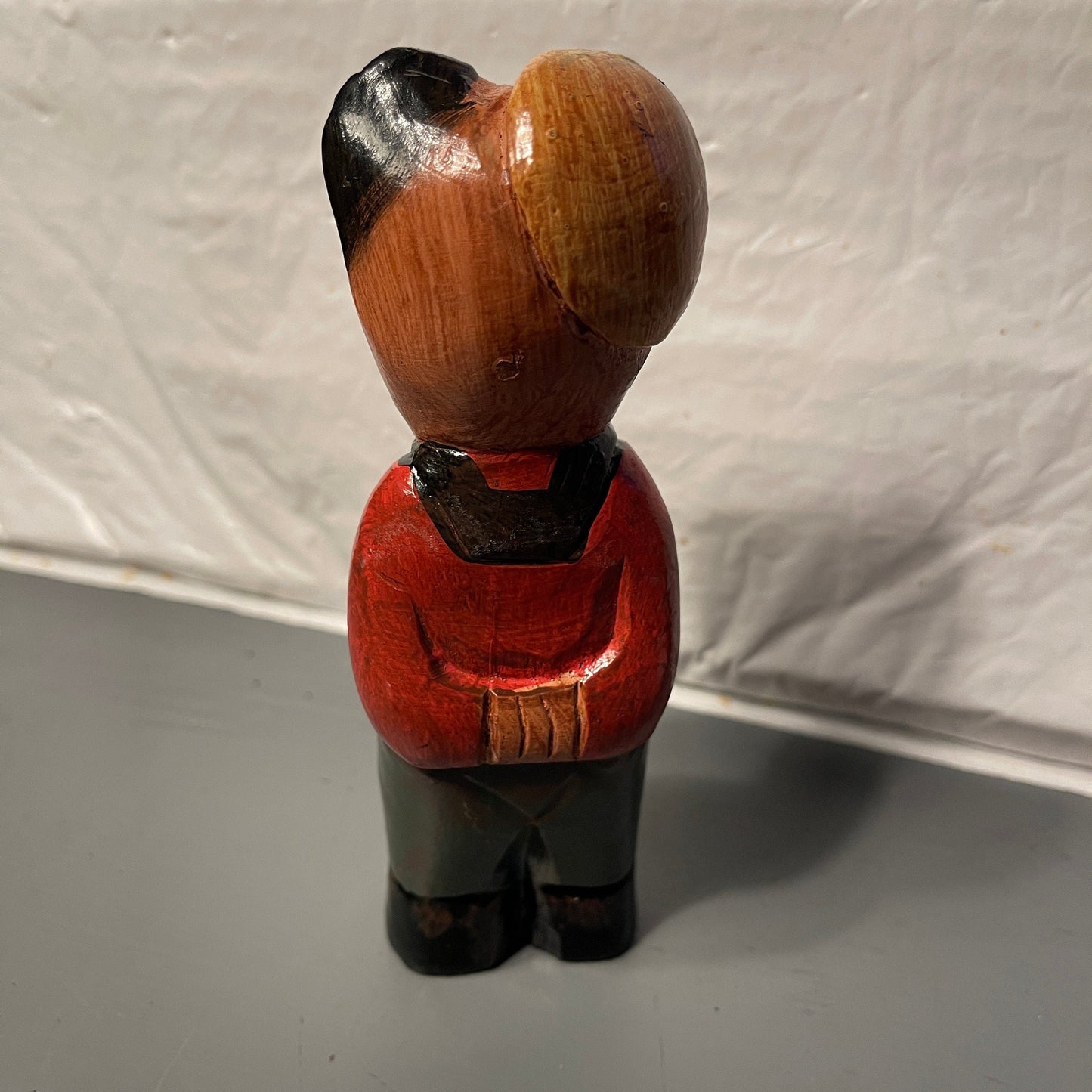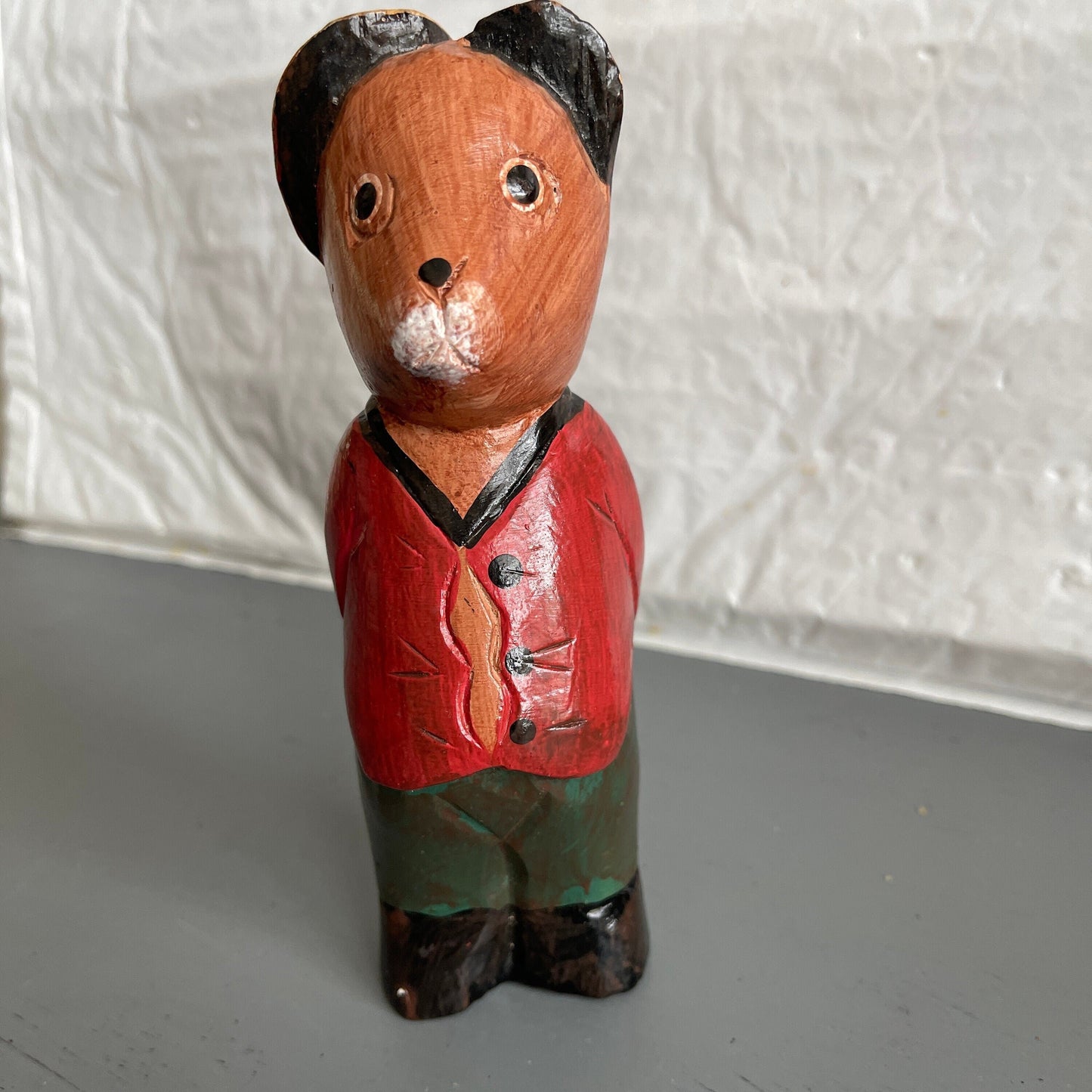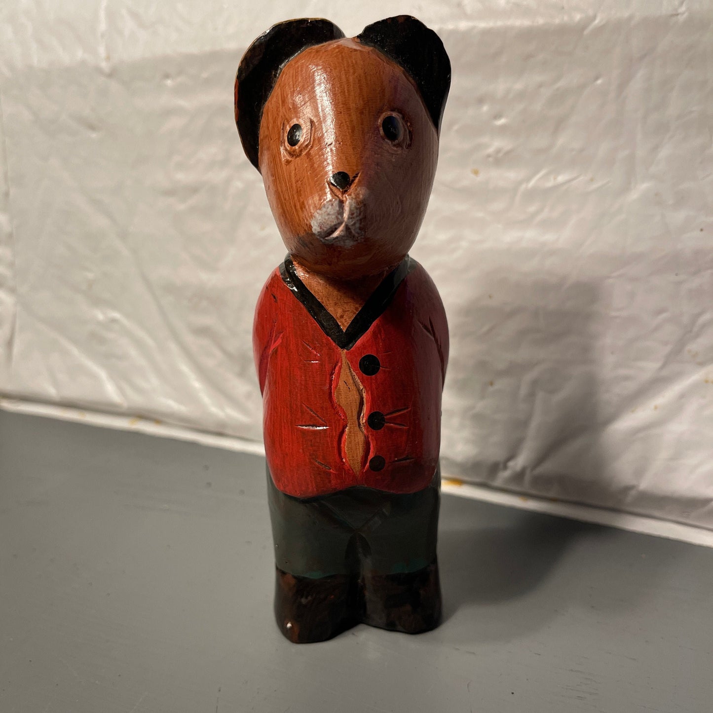 Folk Art Carved Wooden Bear in a Red Sweater and Blue Pants Vintage Cottagecor Decor