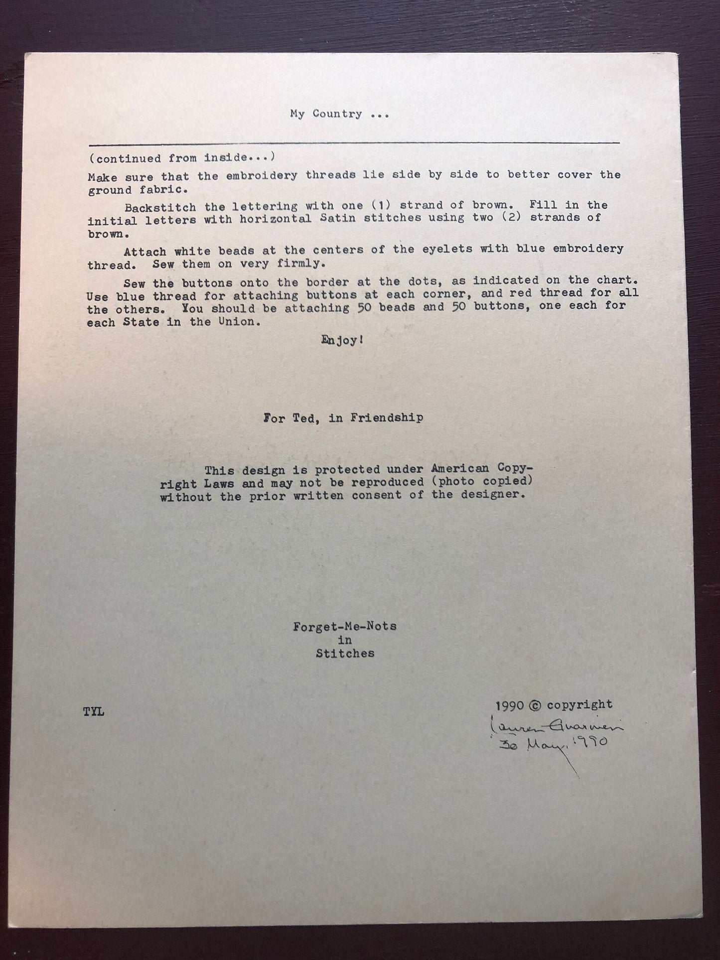 Forget-Me-Nots In Stitches, My Country Tis of Thee, Vintage 1990, Counted Cross Stitch Pattern