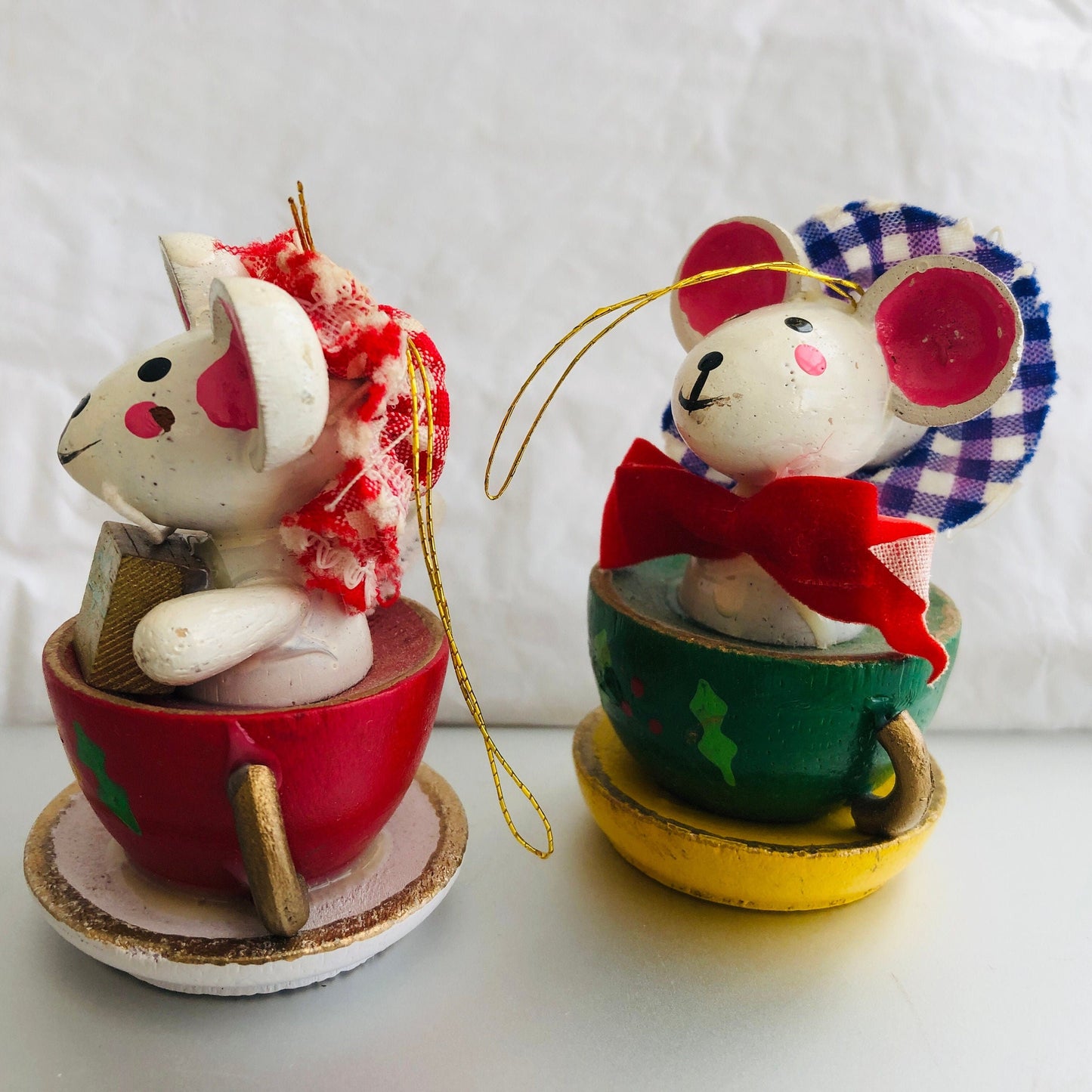 Giftco Tea For Two Mouse Ornaments Vintage 1983 Set Of 2 Wooden Ornaments