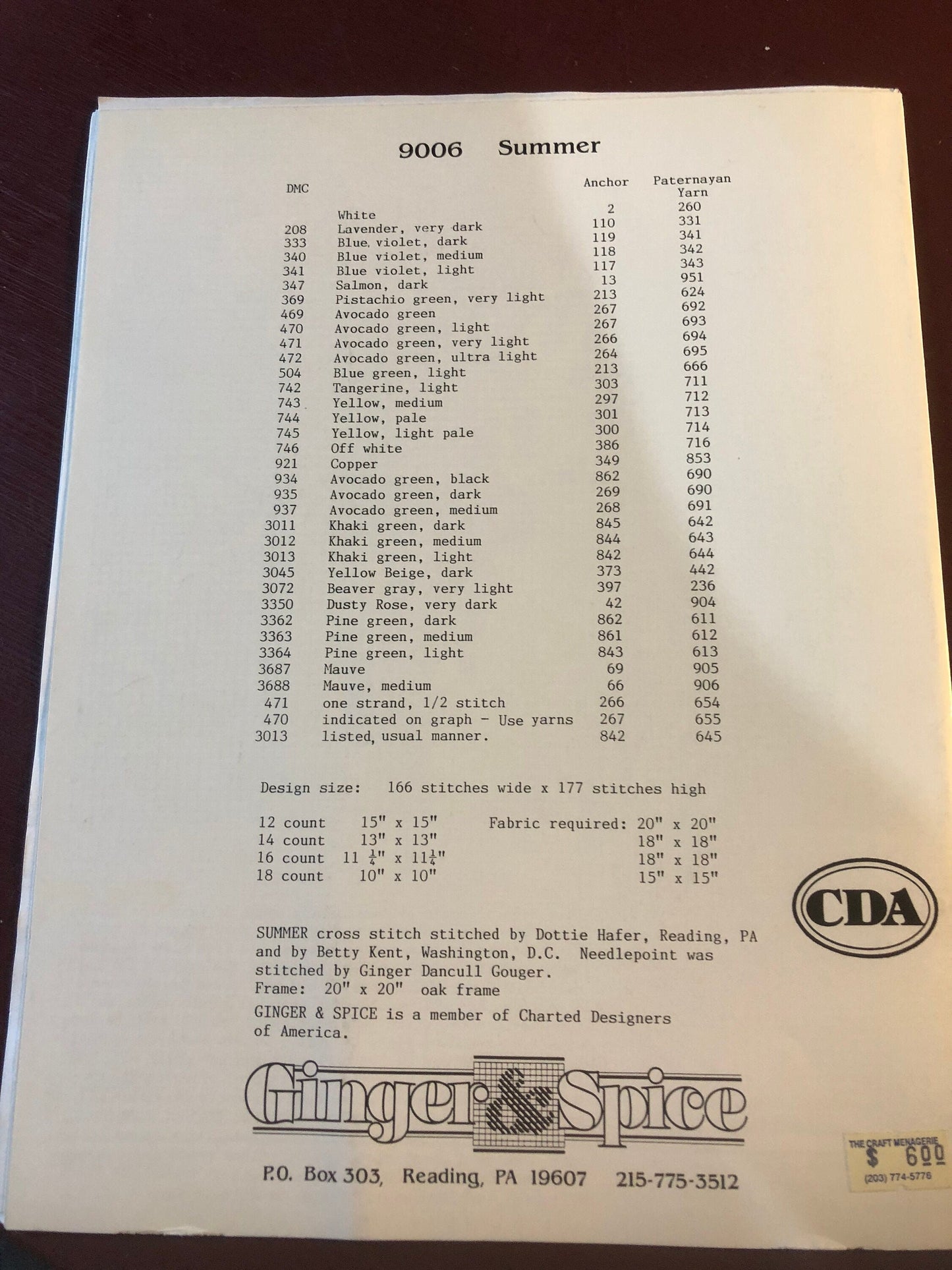 Ginger & Spice, Summer, Charted Designs by Ginger Gouger Vintage, Counted Cross Stitch Pattern 9006, 166 by 177