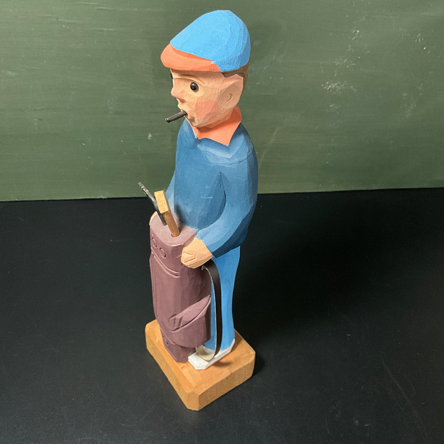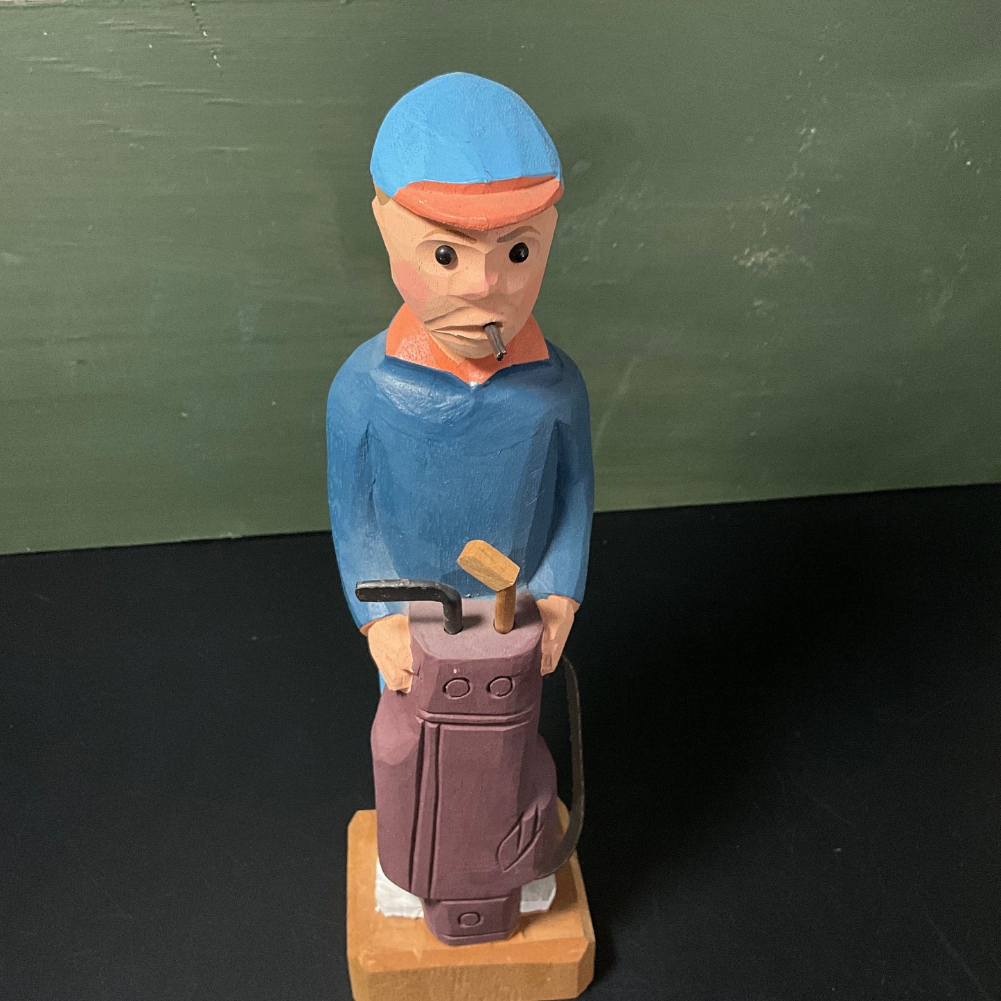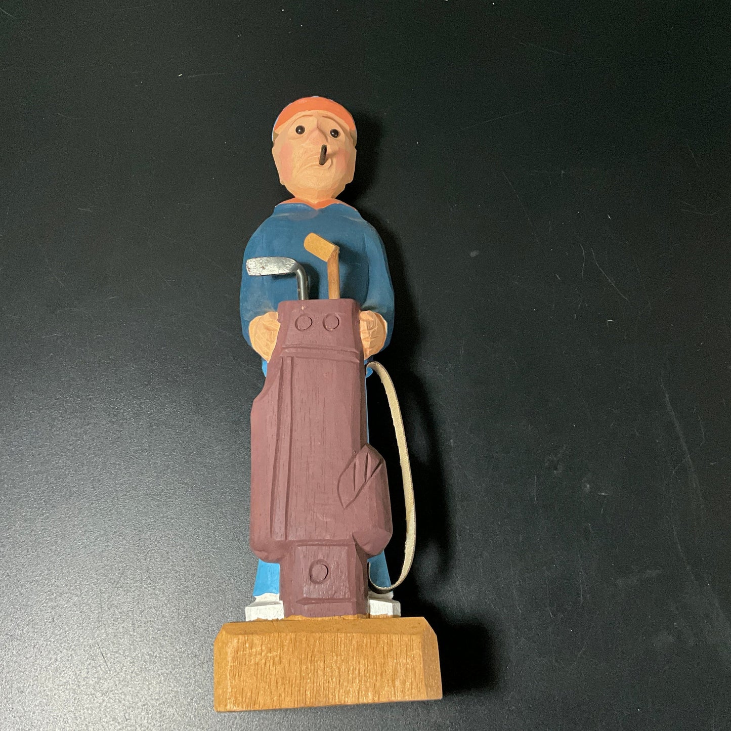 Good Ol' Duffer hand carved wood golf player with bag and clubs vintage collectible figurine