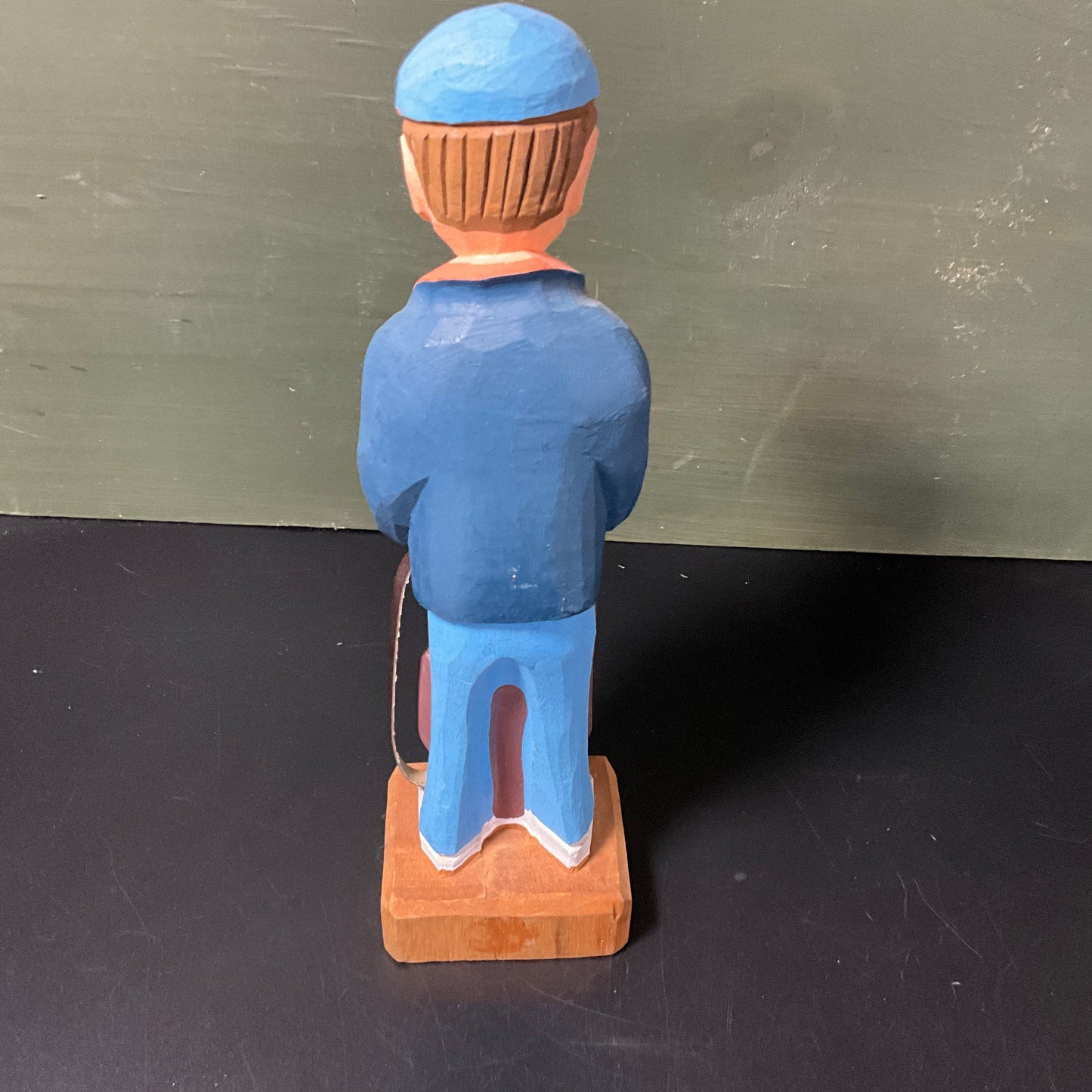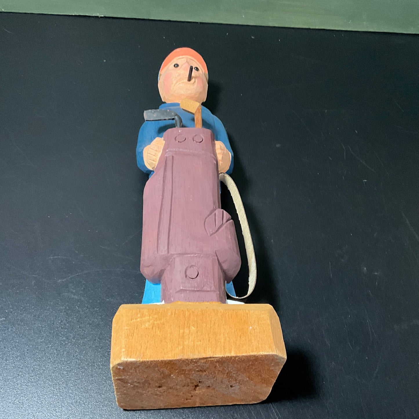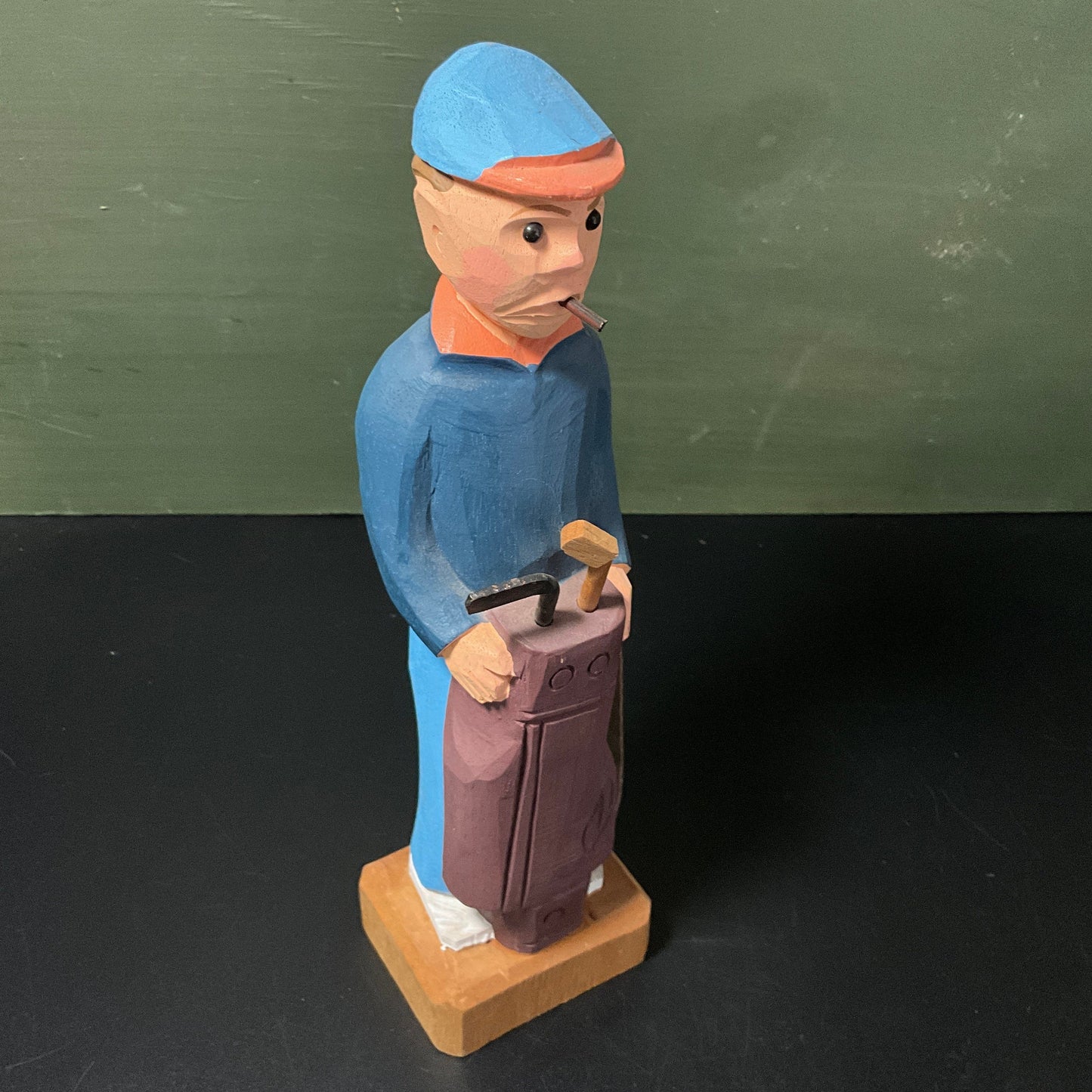 Good Ol' Duffer hand carved wood golf player with bag and clubs vintage collectible figurine