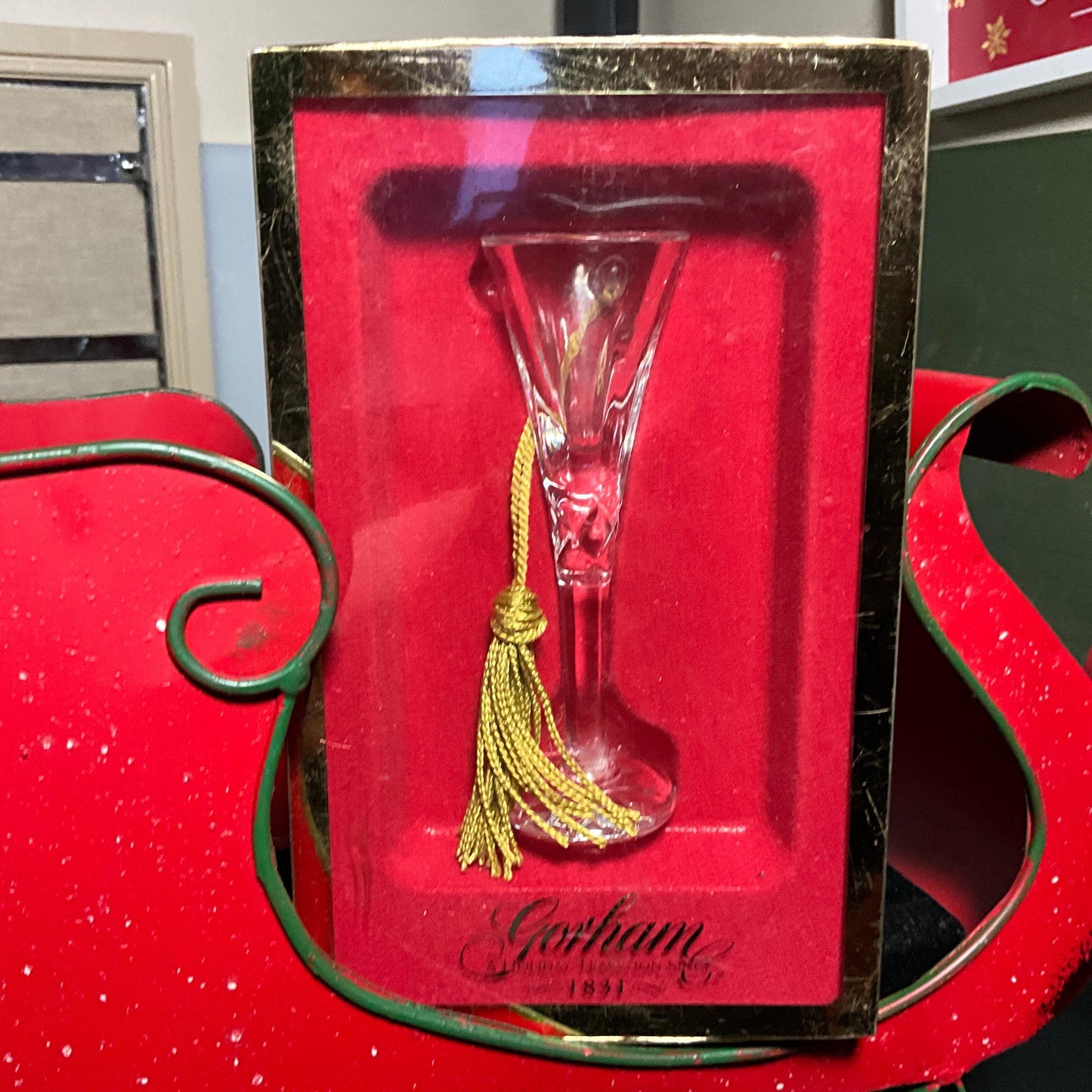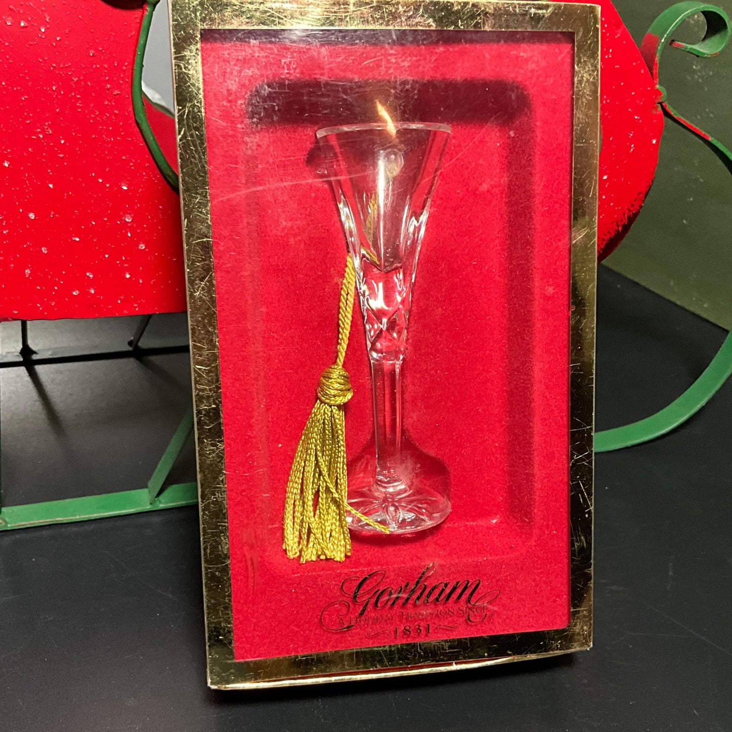 Gorham crystal & gold champagne flute Christmas ornament