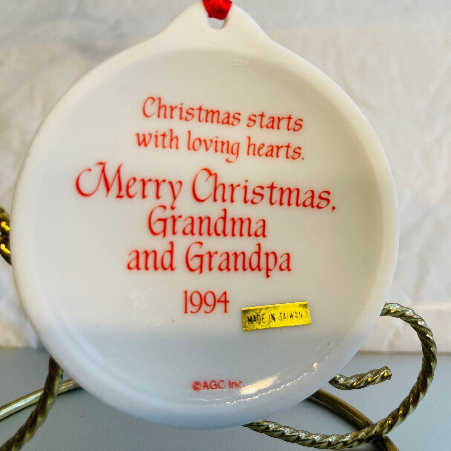 Grandma and Grandpa Christmas Starts with Loving Hearts Dated 1994 Christmas Ornament