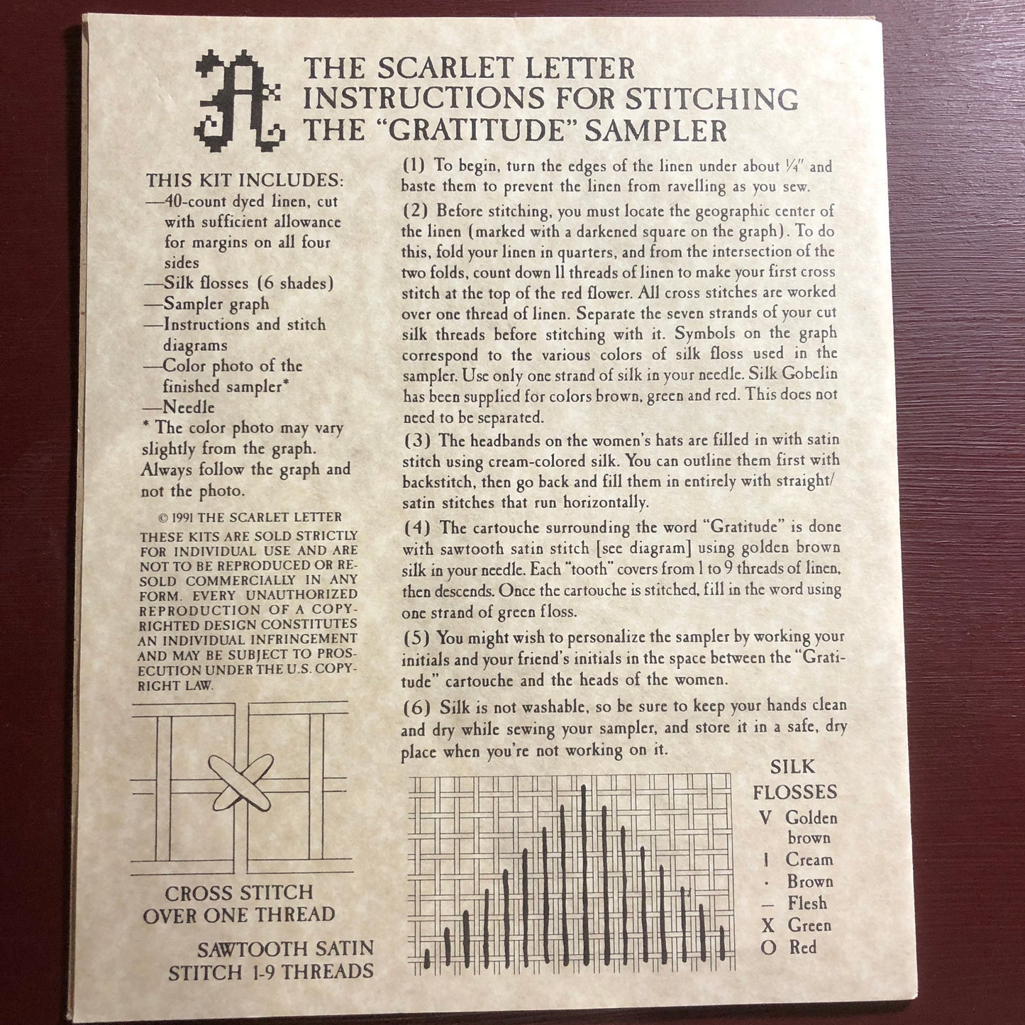 Vintage, 1991, Gratitude, Historic Needlework Reproductions from the Scarlet Letter, Counted Cross Stitch Pattern