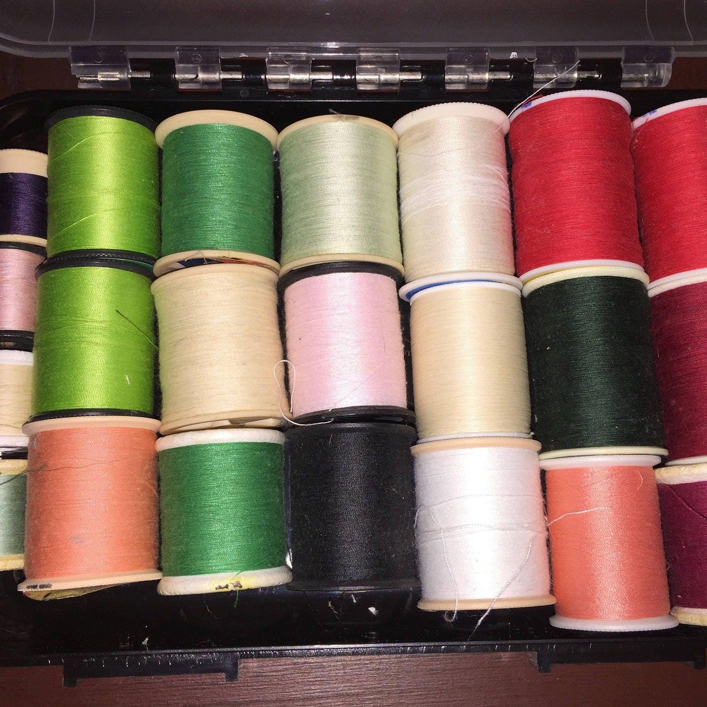 Sewing Notion Bargain Box full of used spools of thread great storage box is included*