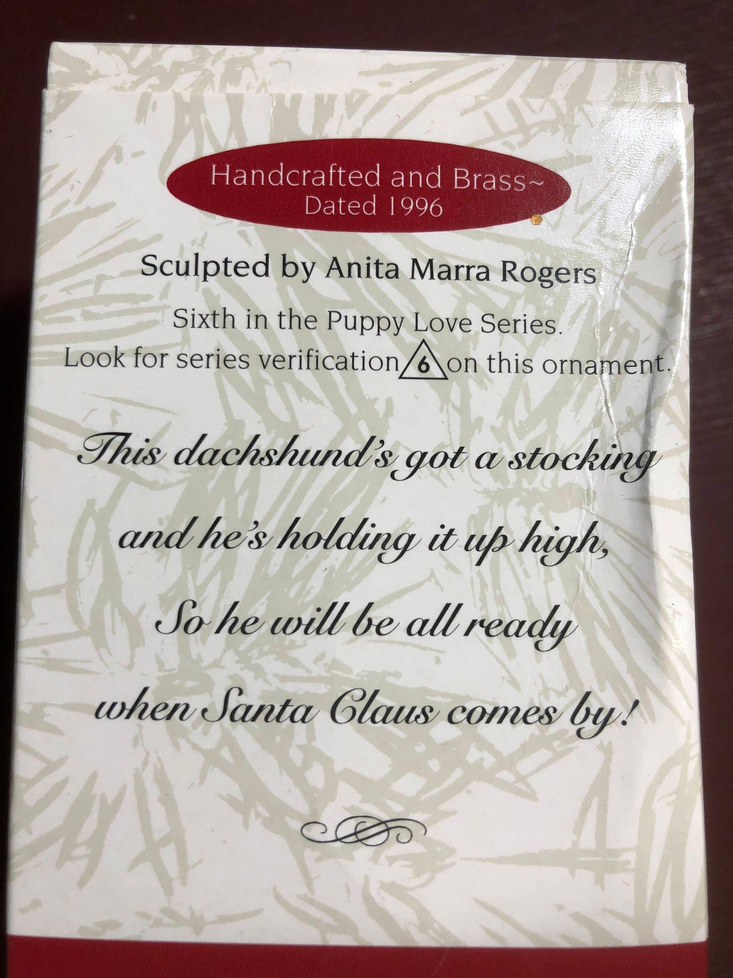 Hallmark, Puppy Love #6, Dachshund, Dated 1996, Keepsake Ornament, QX5651