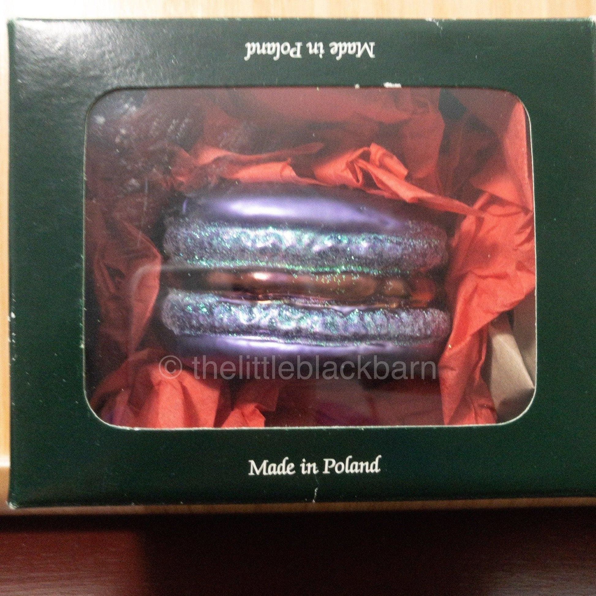 Handcrafted Ornament From Poland, Looks Like a Purple Hamburger Or Sandwich Cookie
