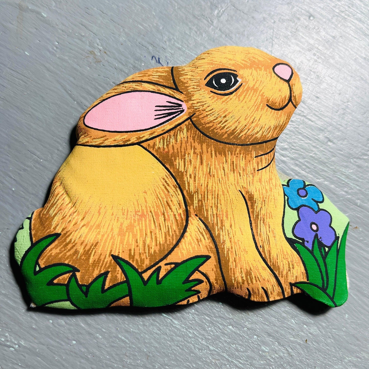 Handpainted, Muslin, Bunny Rabbit, in Flowers, Vintage Collectible