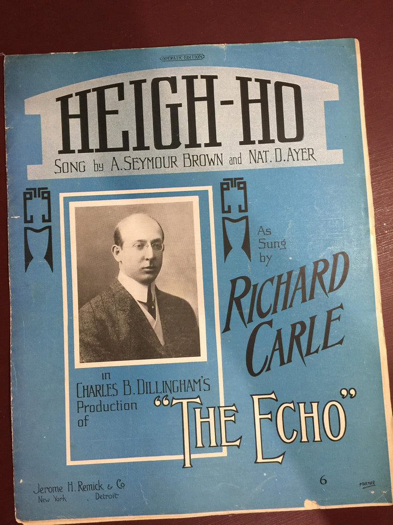 Vintage 1910 "Heigh-Ho" Song by A. Seymour Brown and Nat. D. Ayer Music by Charles B. Dillingham's "The echo" Jerome H. Remick & Co. New York Detroit