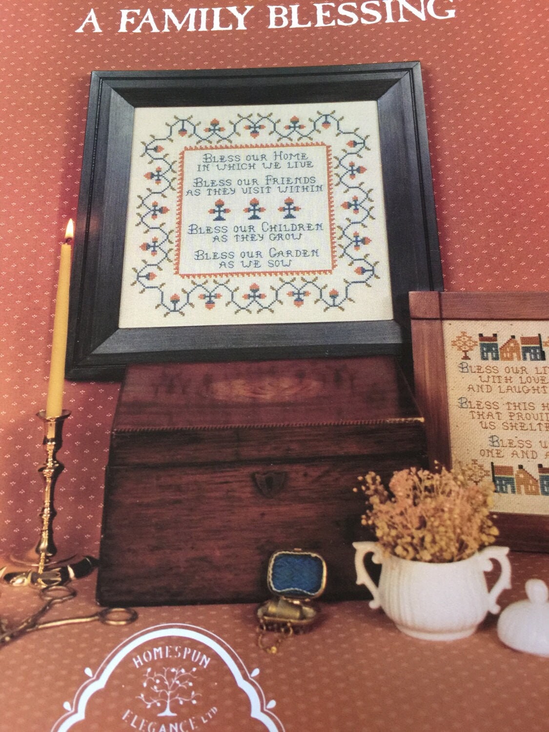 This is the vintage Homespun Elegance Book No 70 A family Blessing counted cross stitch design. It features 2 Blessing designs: