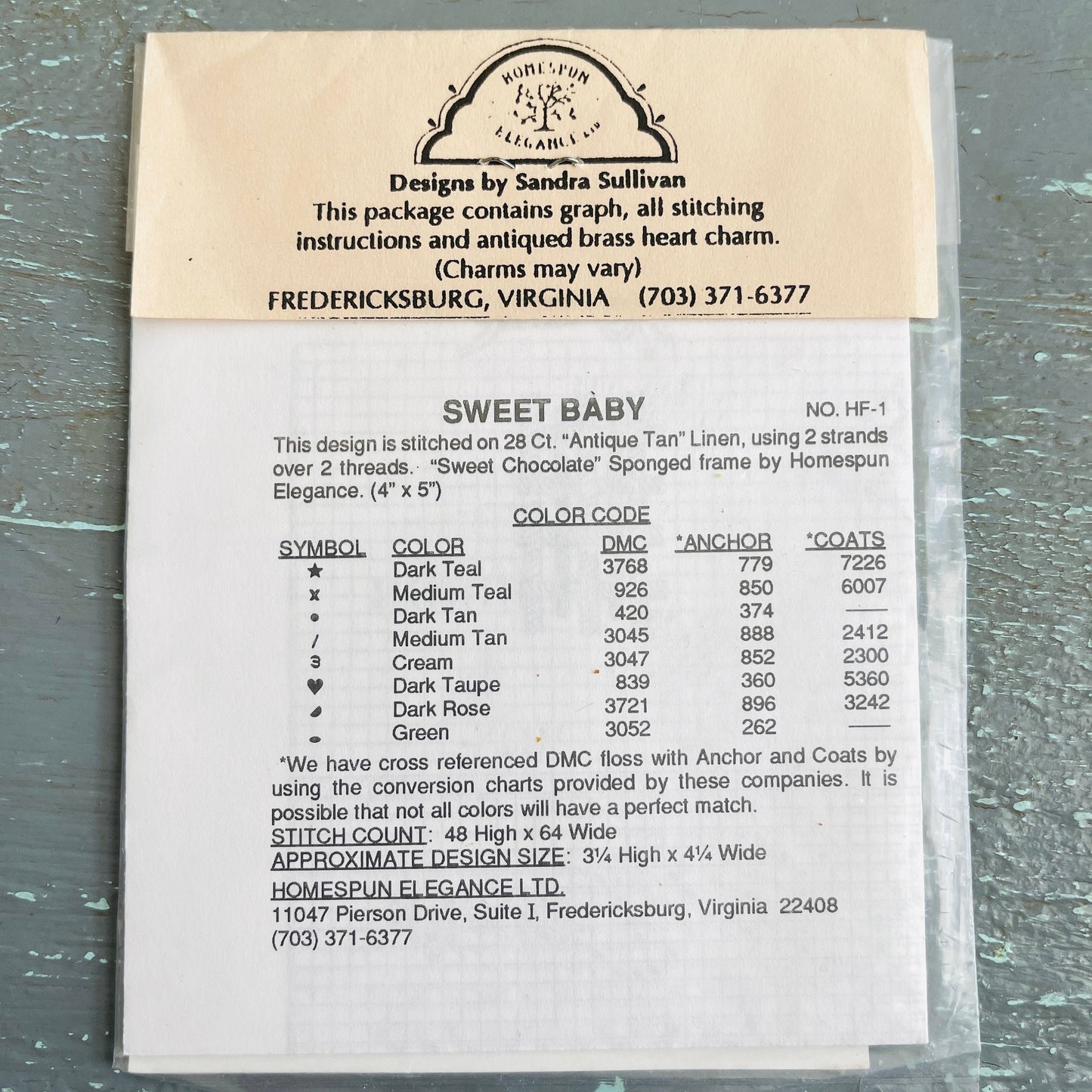 Homespun Elegance, Heart-Felt Samplers, Sweet Baby with charm, Counted Cross Stitch Design Chart