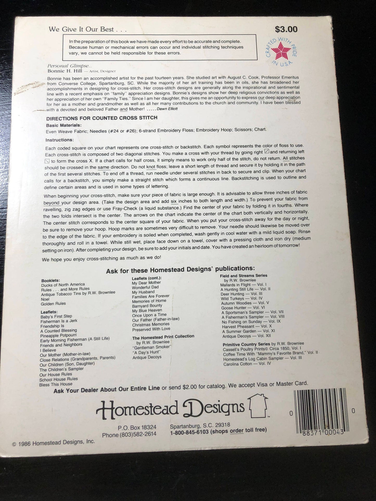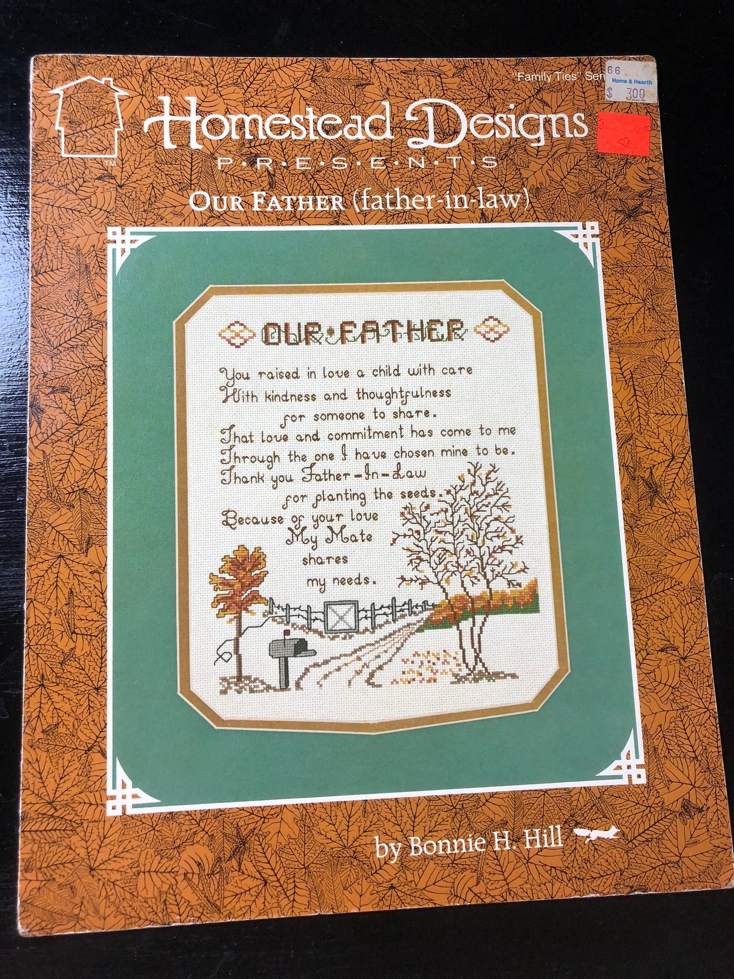 Homestead Designs, Presents, Our Father, (father-in-law), Family Ties Series, by Bonnie Hill, Vintage 1986, OOP, Cross Stitch Pattern