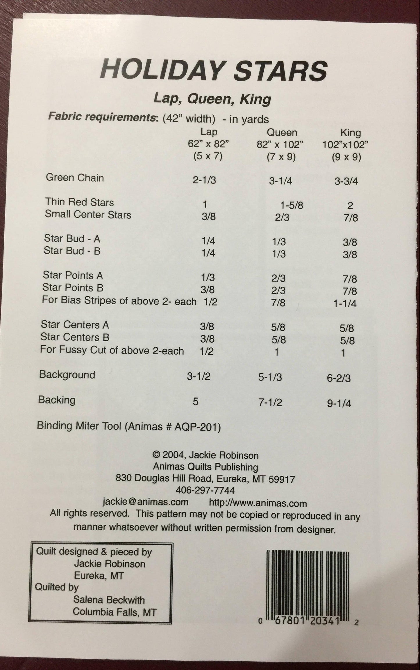 Jackie's Animas Quilts Publishing "Holiday Stars" quilt pattern to make Lap, Queen , King quilts AQP-341