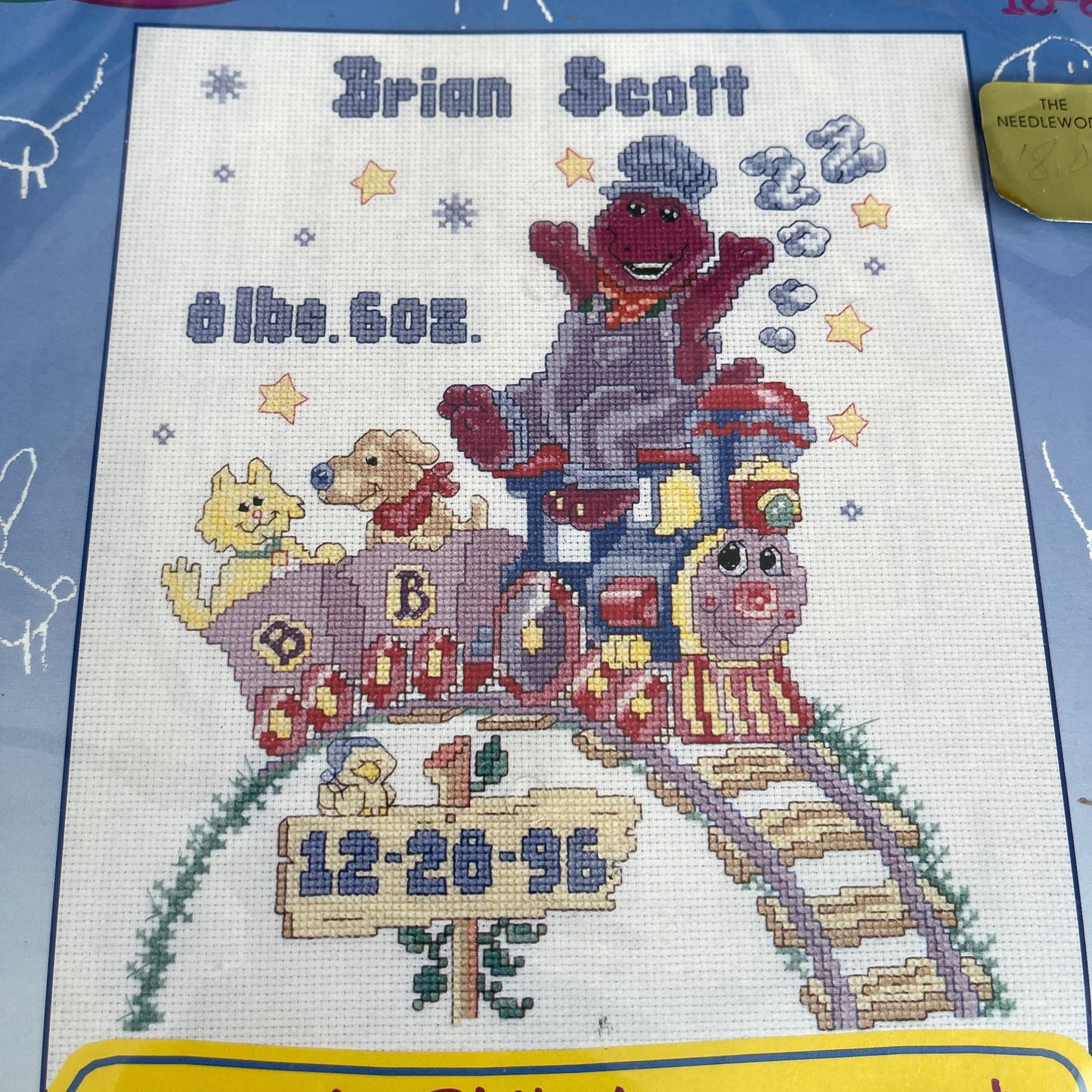 Janlynn, Barney, Sleepyville Birth Announcement, 16-84, Vintage 1997, Counted Cross Stitch Kit 11 by 14 inches*