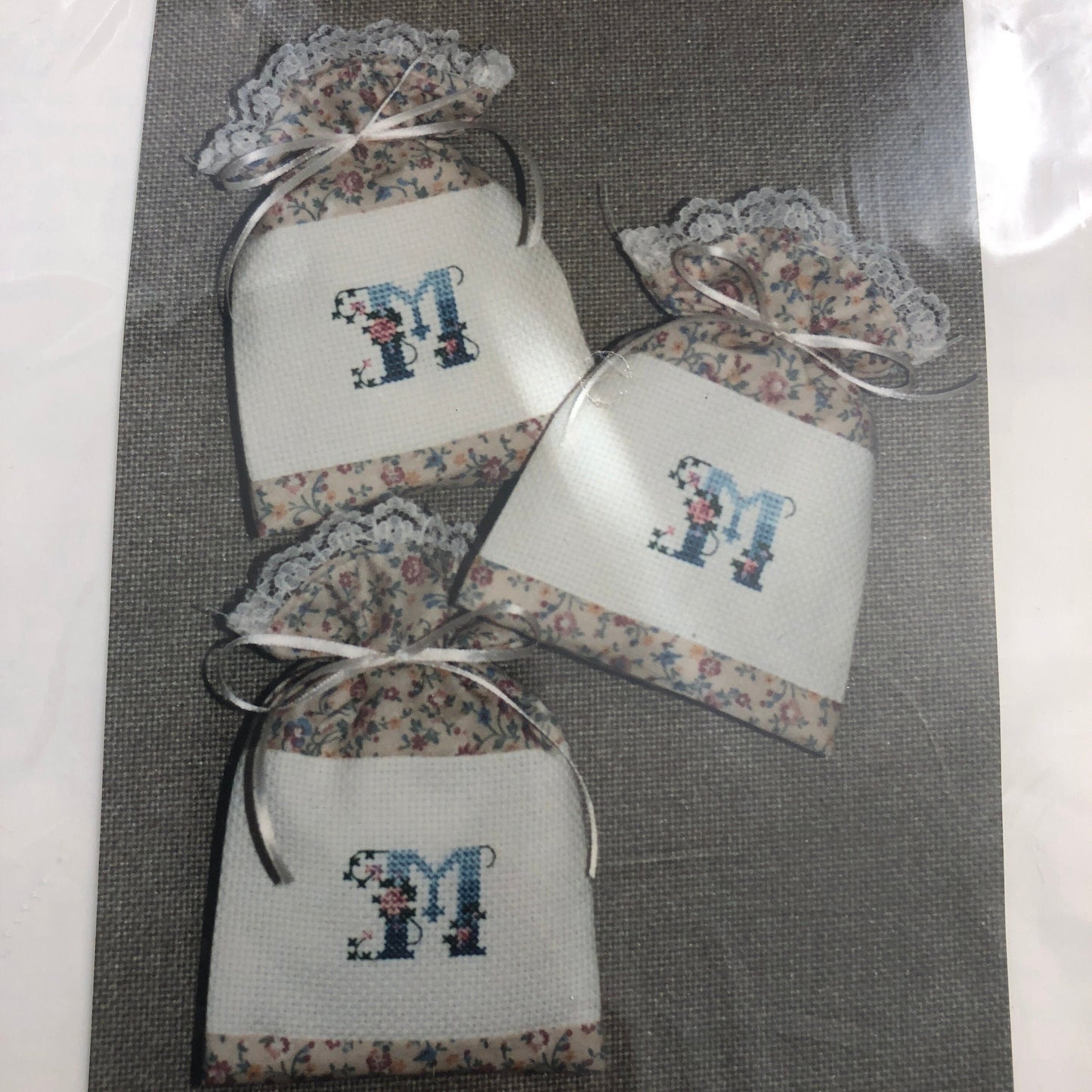 Janlynn, Classic Rose Monogram Sachet, Vintage 1987, Counted Cross Stitch Kit, 4 Sachets and floss included