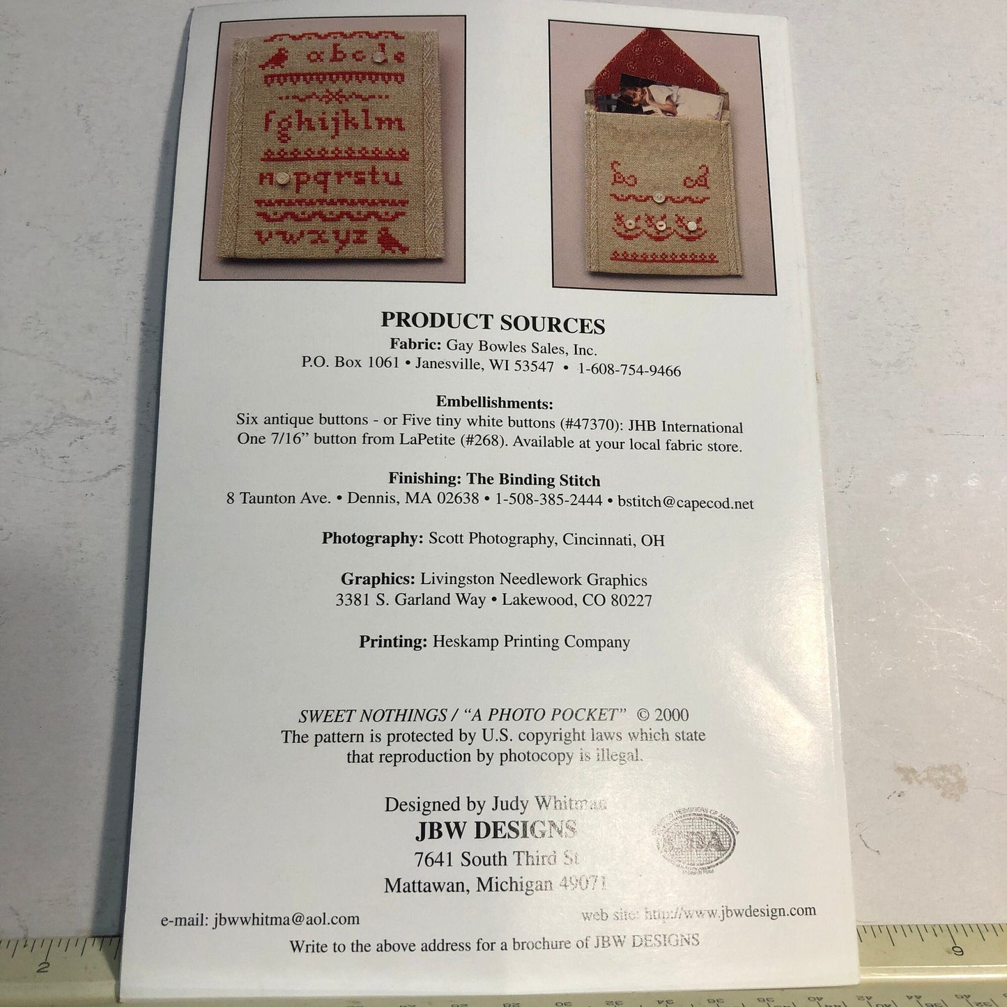 JBW, Sweet Nothings, A Photo Pocket, Judy Whitman, Vintage 1999, Counted Cross Stitch Chart