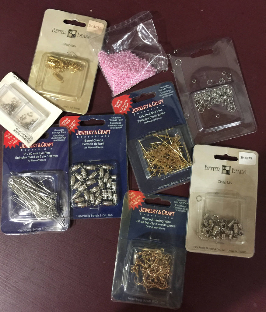 Jewelry making supplies bargain lot barrel clasps, Eye pins, earring wires, etc. see pictures for further contents.