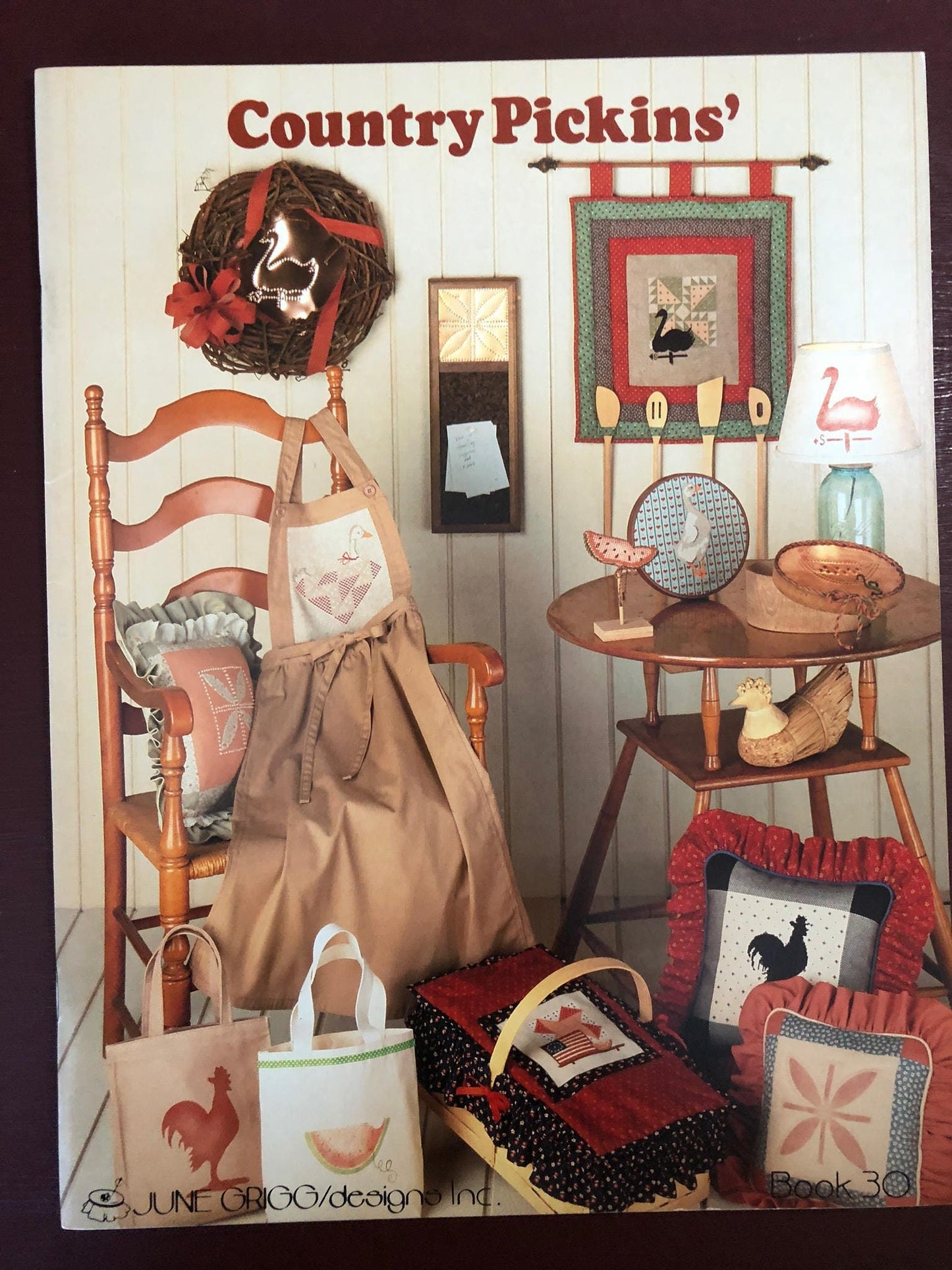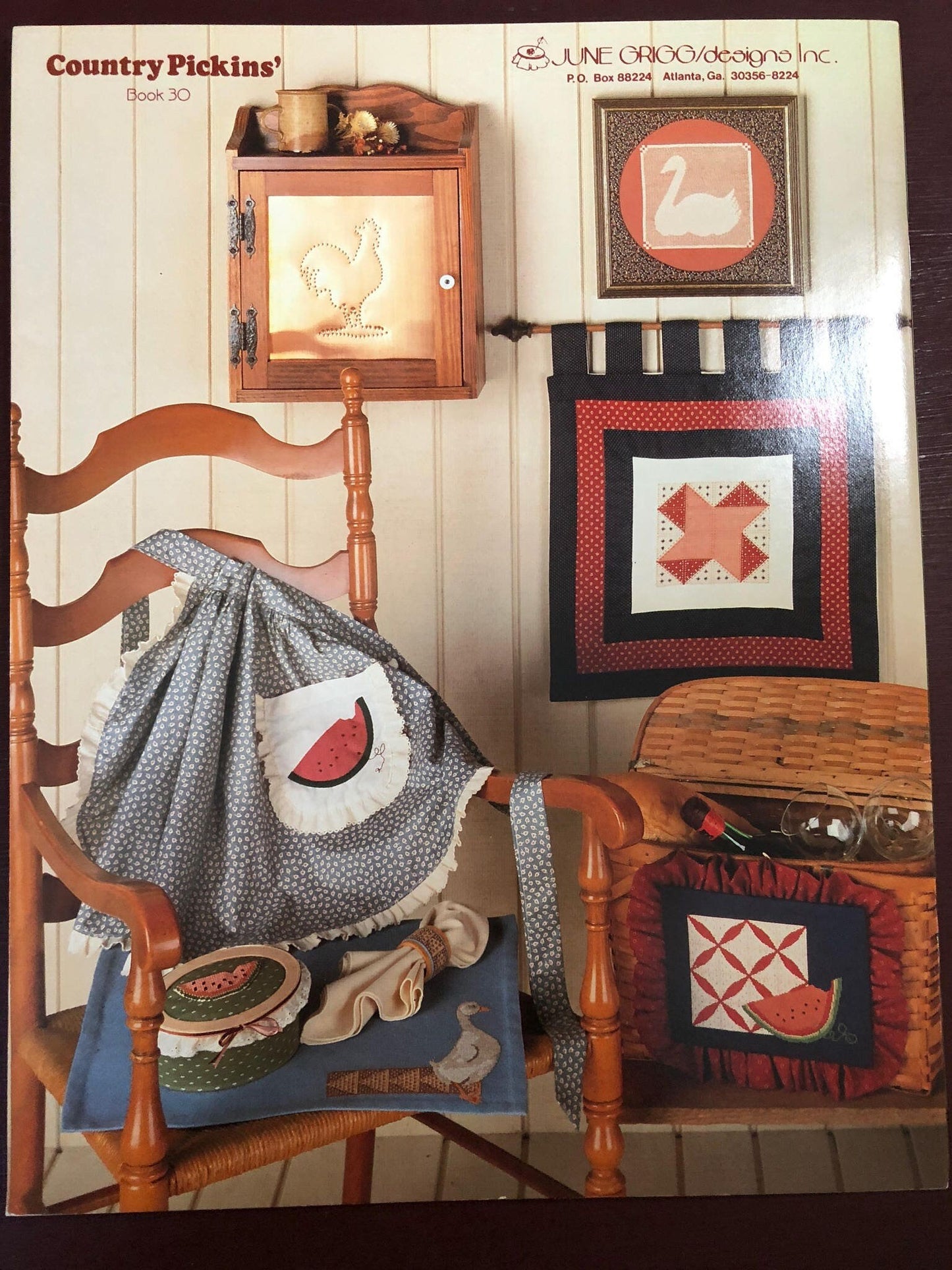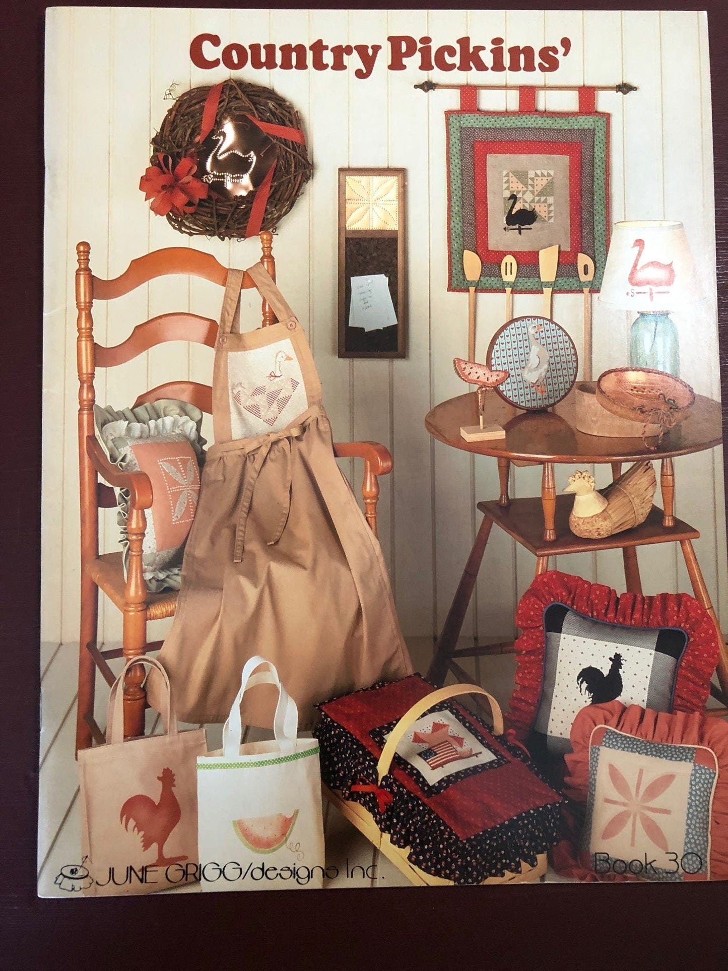 June Grigg Designs Country Pickens', Book 30, Vintage 1984, Counted Cross stitch Pattern Book
