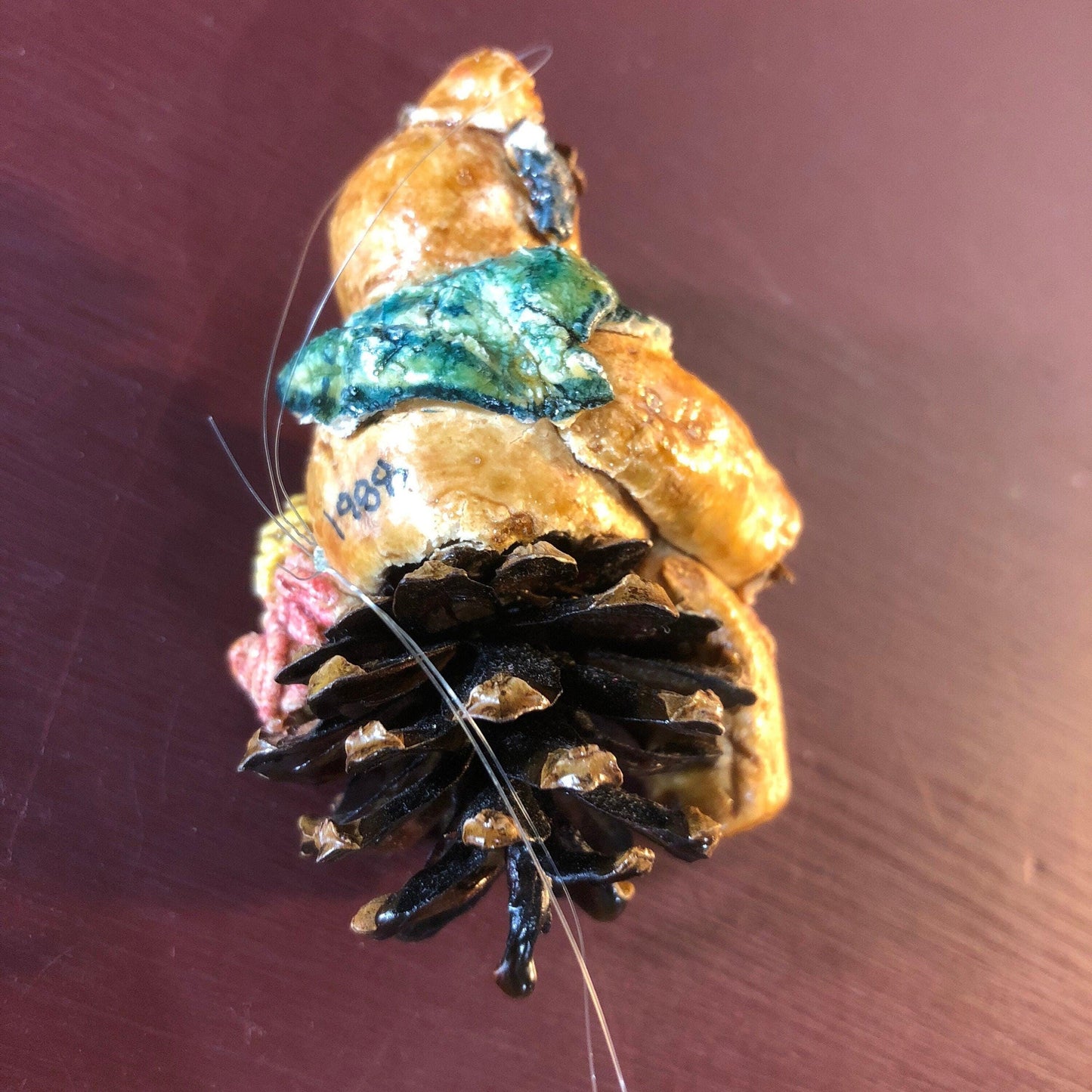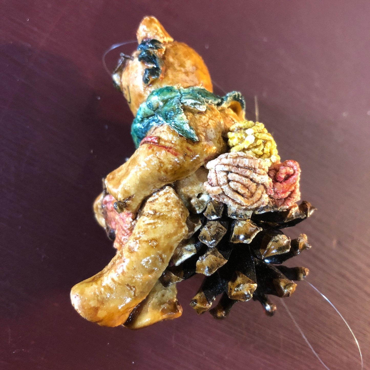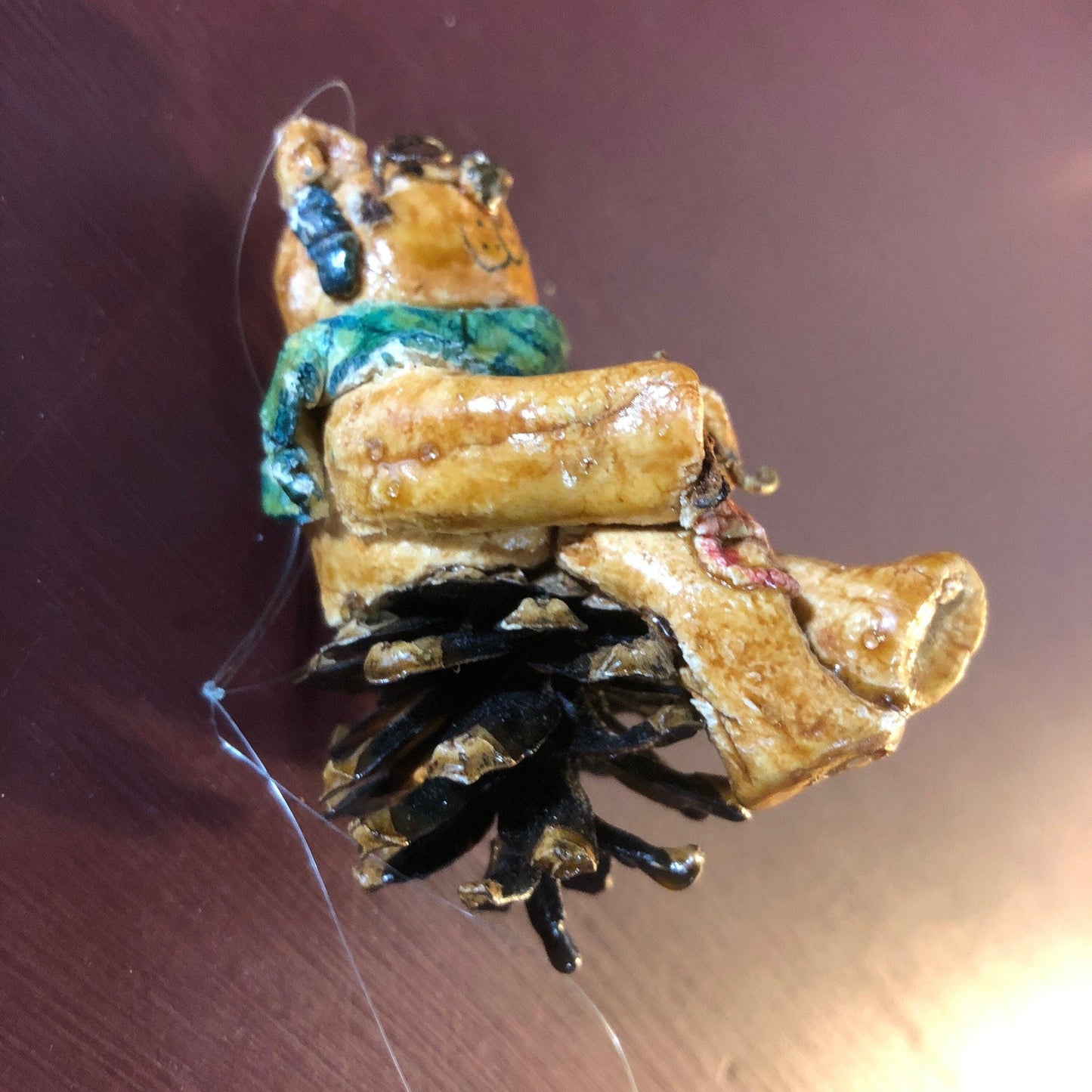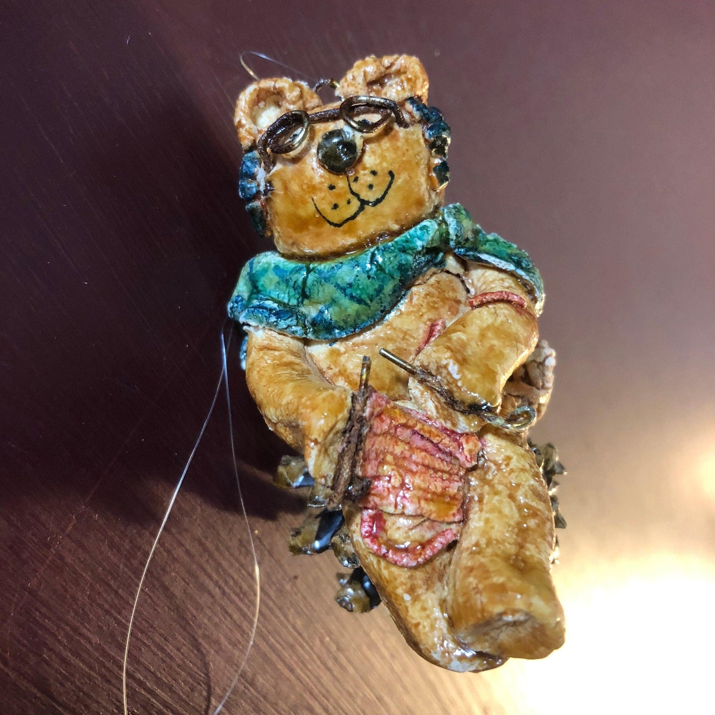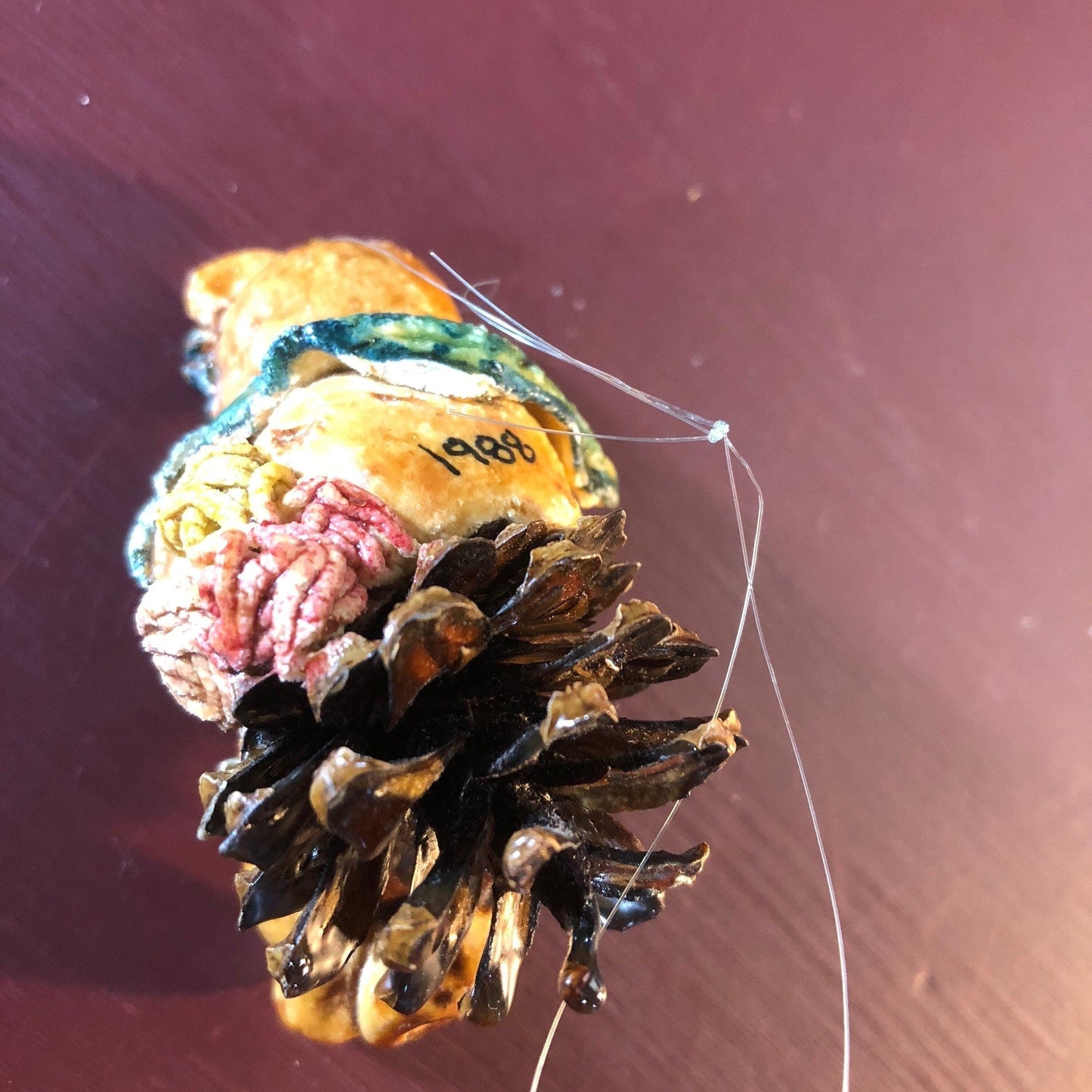 Knitting Bear Sitting On A Pine Cone Vintage 1988 Christmas Ornament